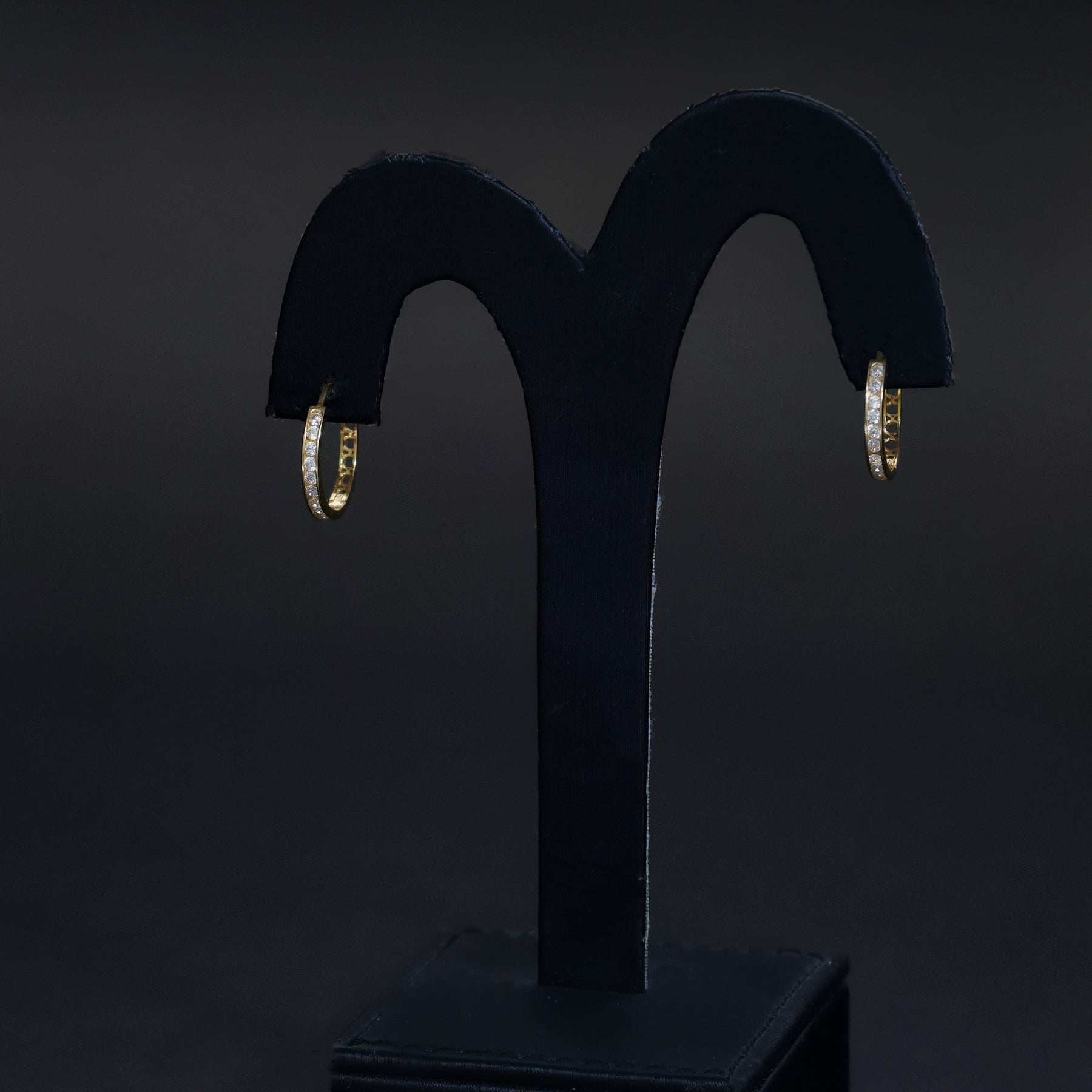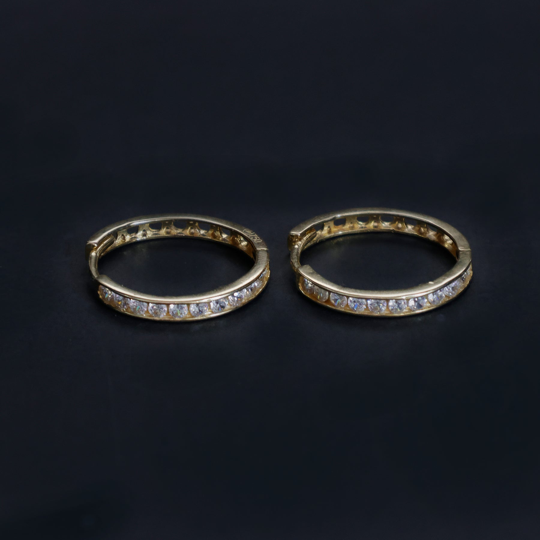 18k Gold Earrings - CZ Hoop Design - Zero Making Charge - Full View