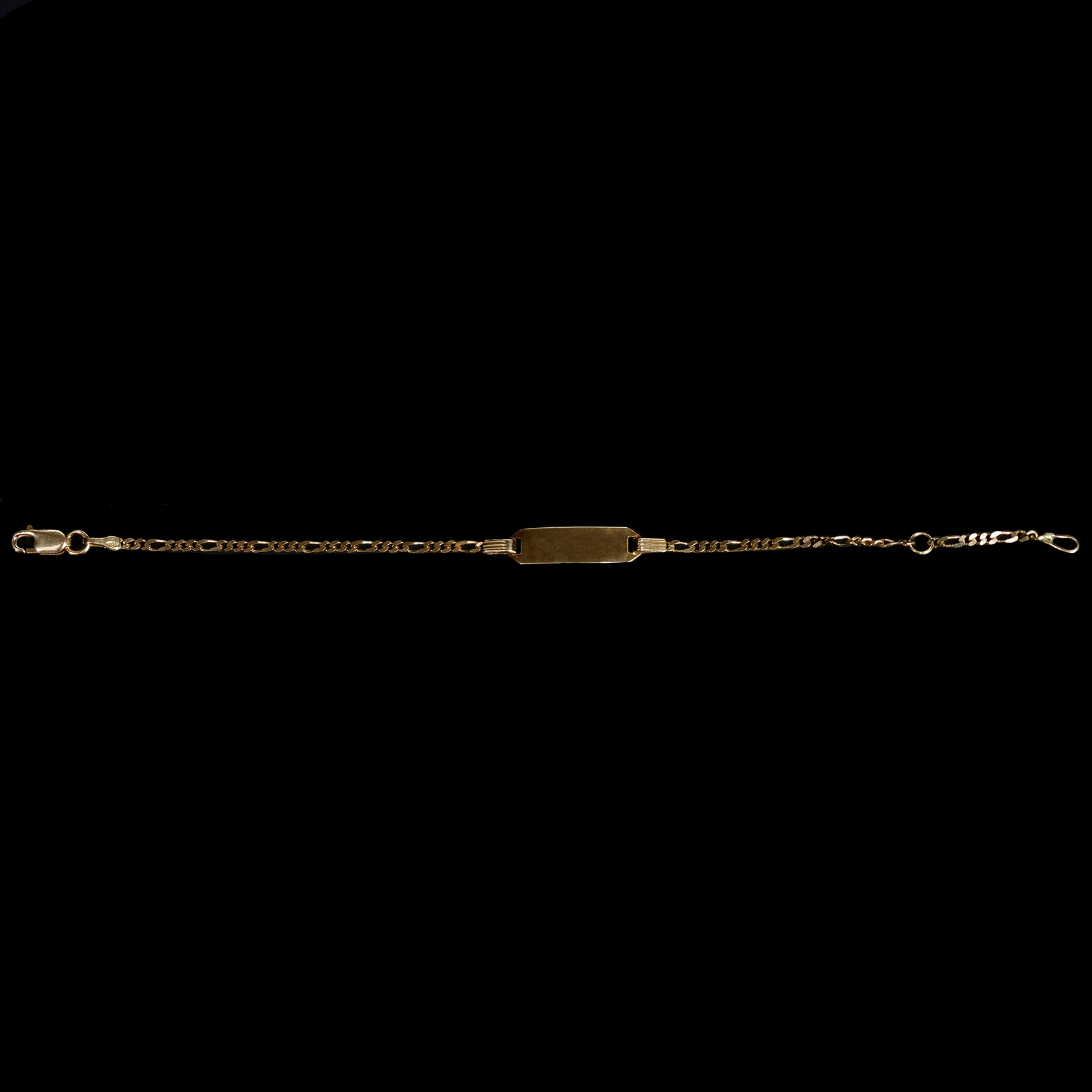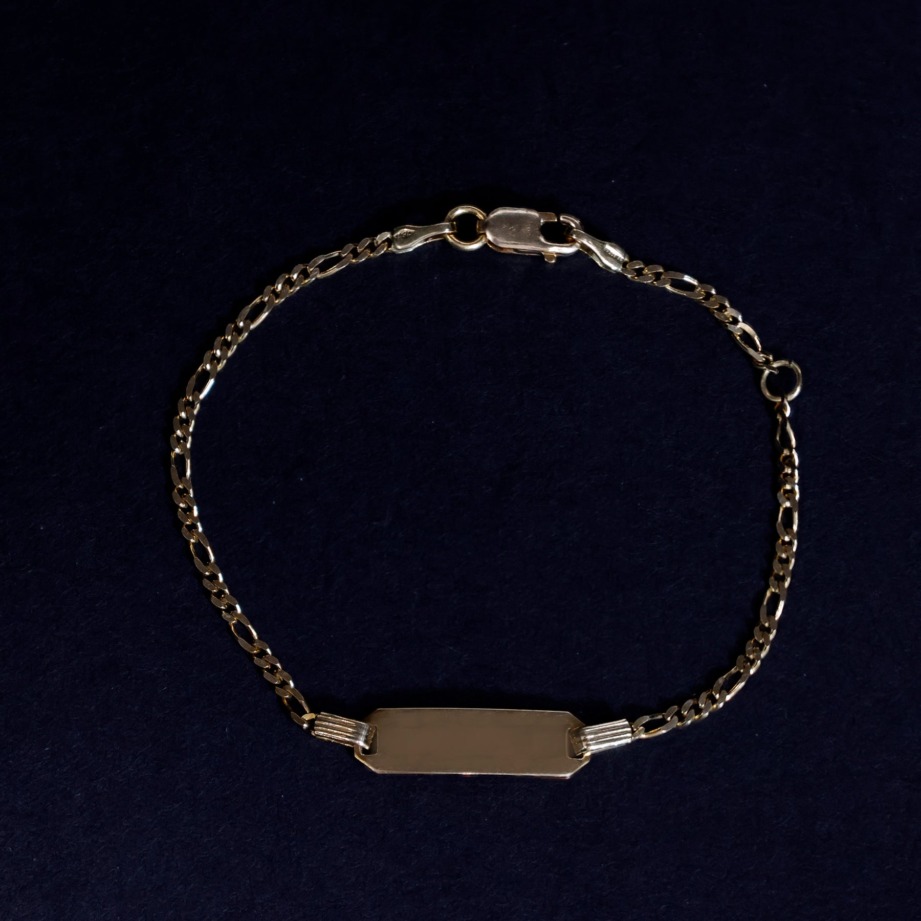 18k Gold Kids Figaro Bracelet - ID Plate Design - Zero Making Charge