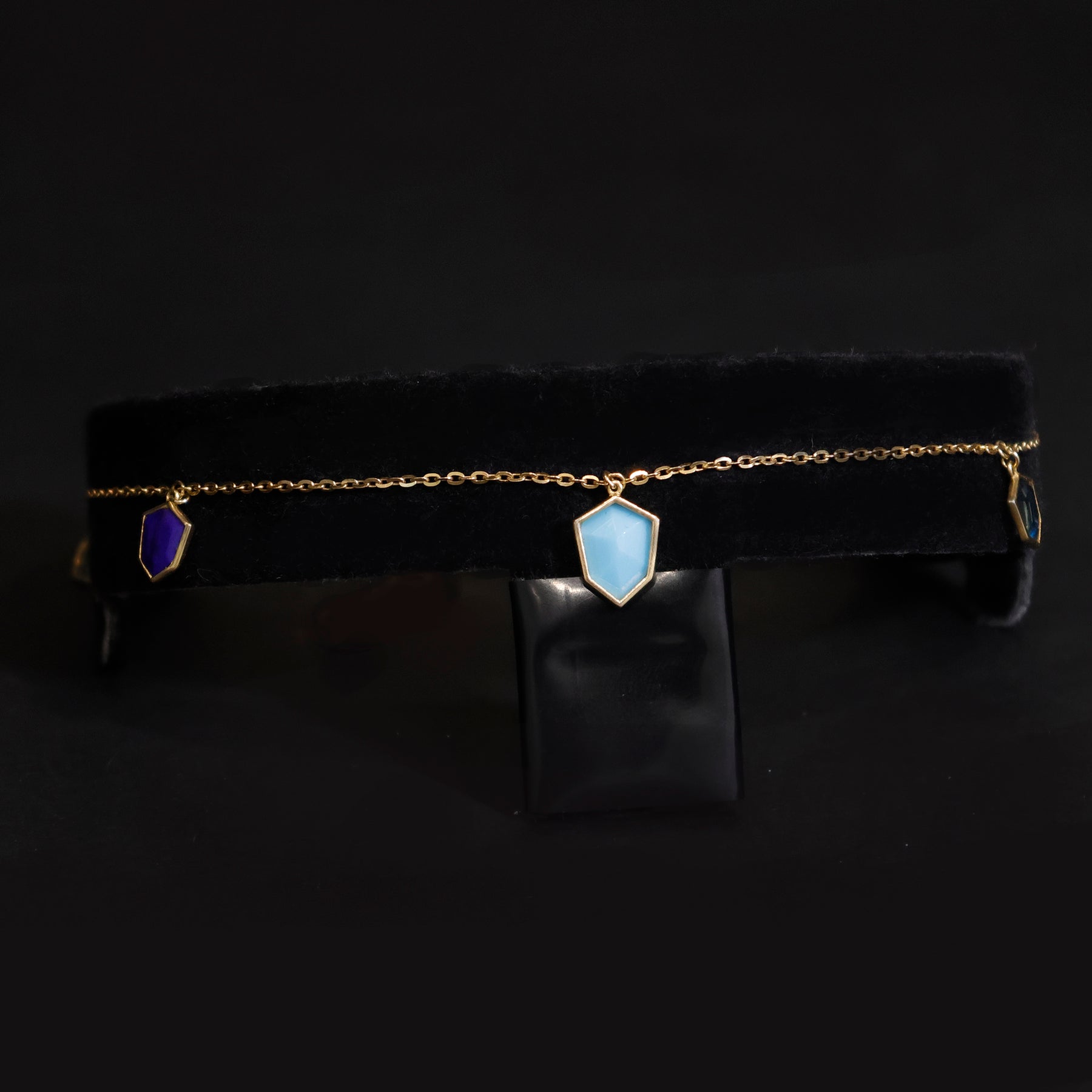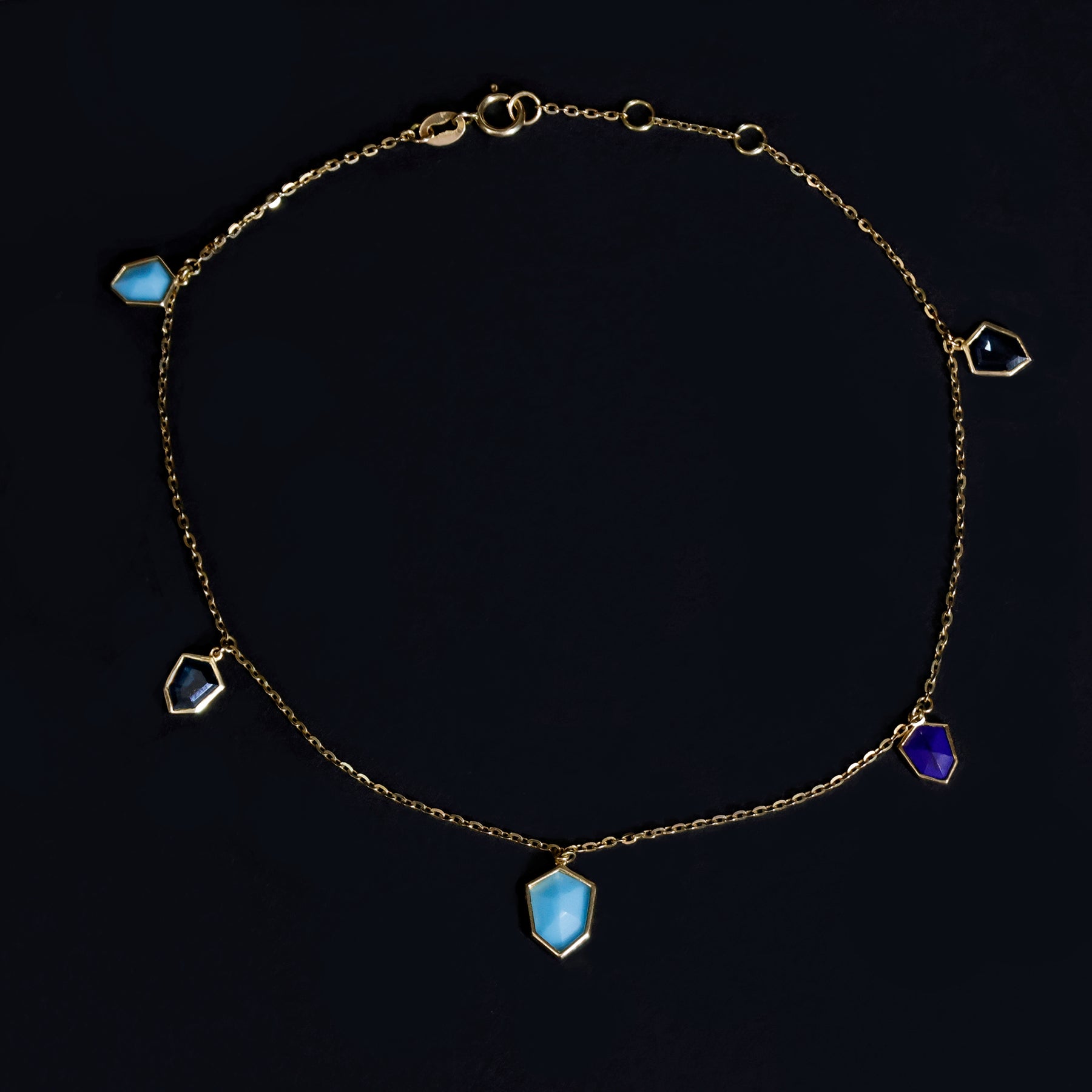 18k Gold Anklet - Gemstone Charm Design - Zero Making Charge - Close View