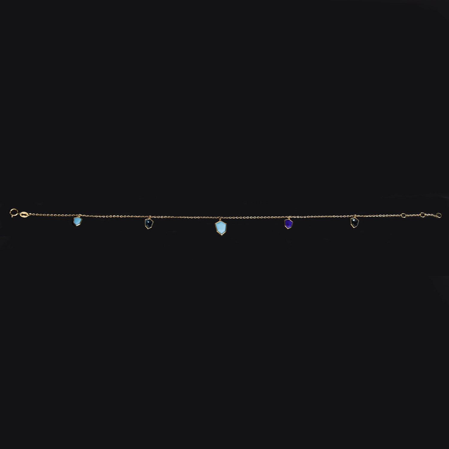 Add a touch of elegance to your every step with this stunning 18K Gold Anklet, featuring a graceful arrangement of gemstone charms that shimmer beautifully with movement. Crafted in high-purity 18K gold, this anklet blends luxury with a playful, feminine charm, perfect for everyday wear or special occasions.