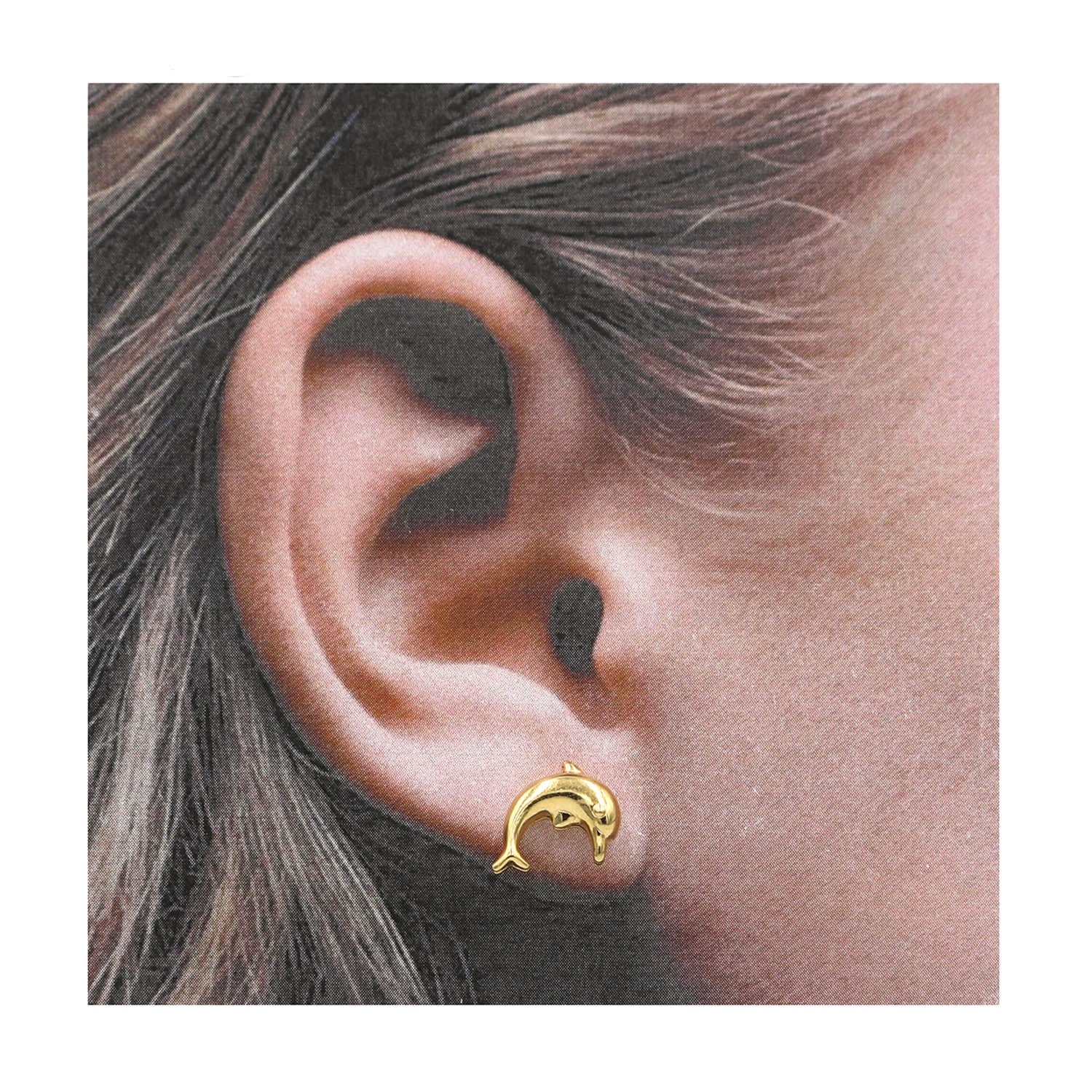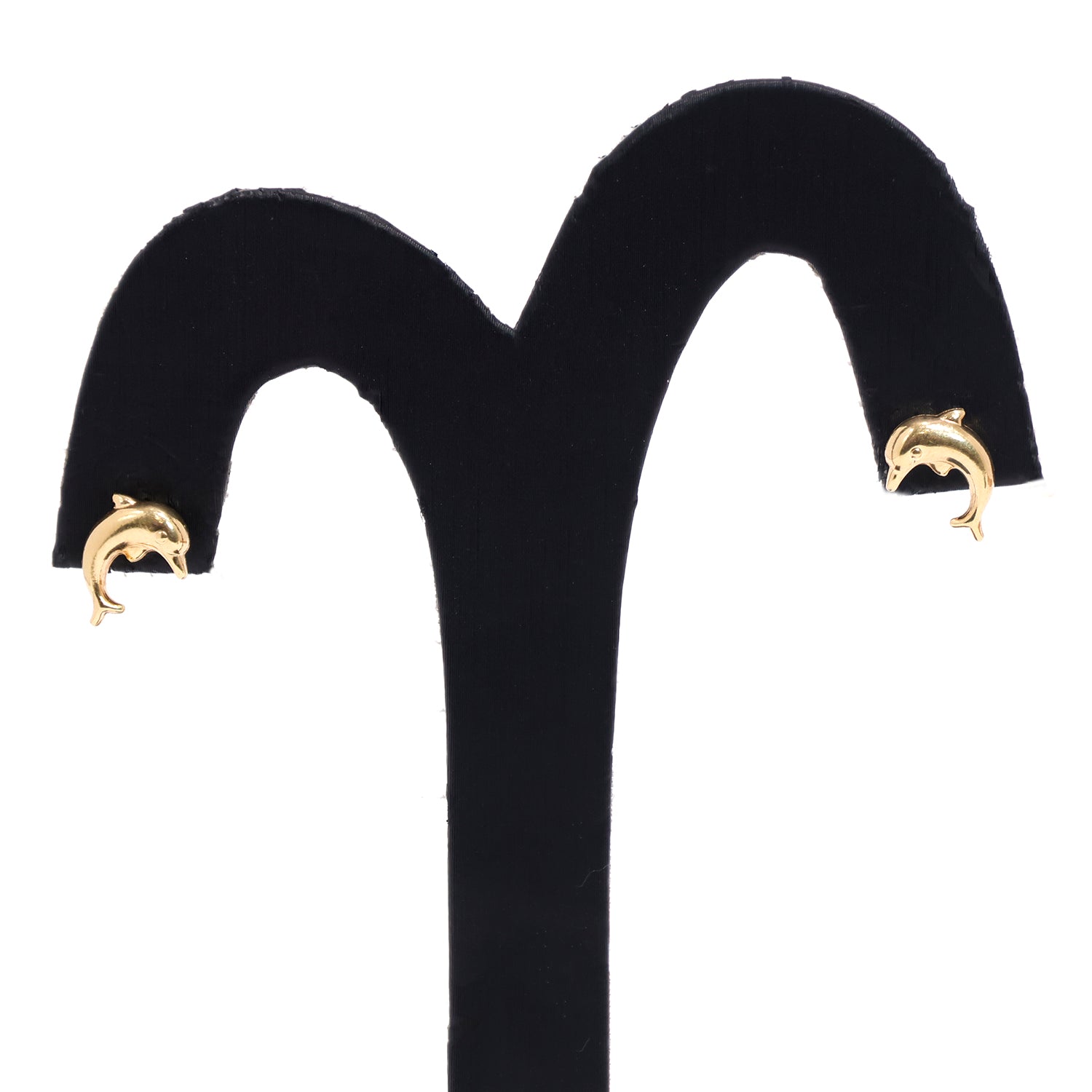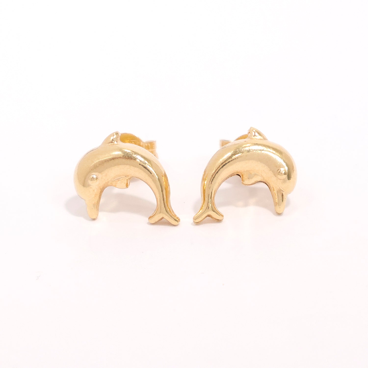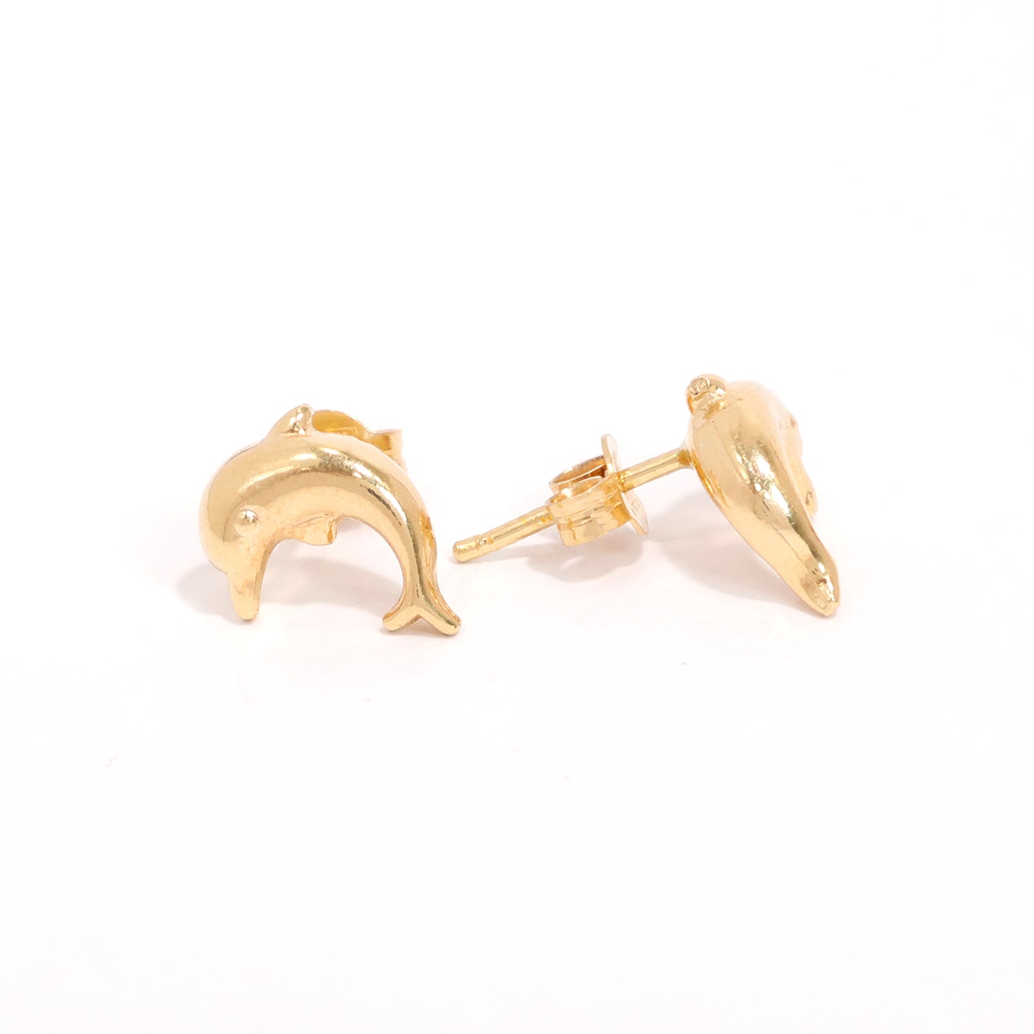 18K Gold Earrings with Dolphin Stud Design - Shop Now