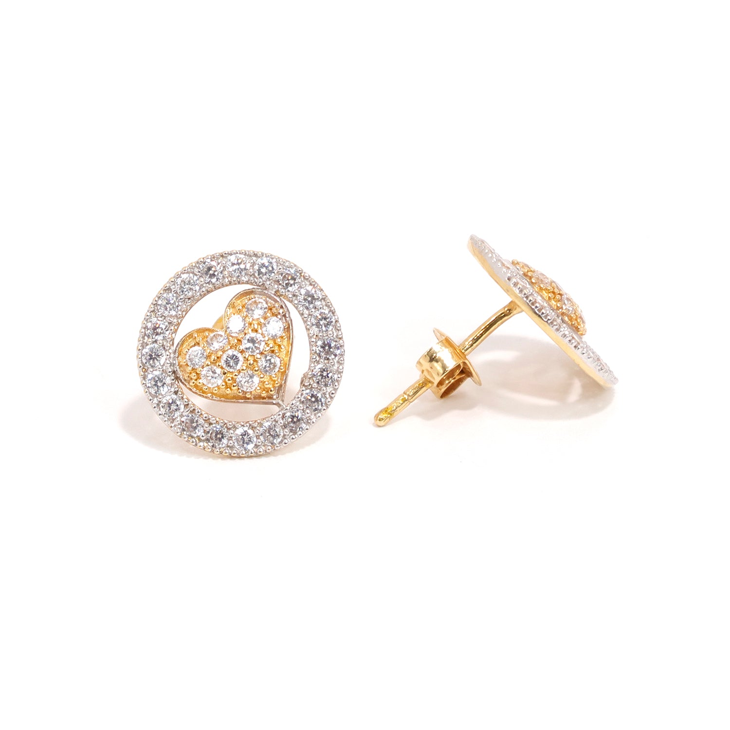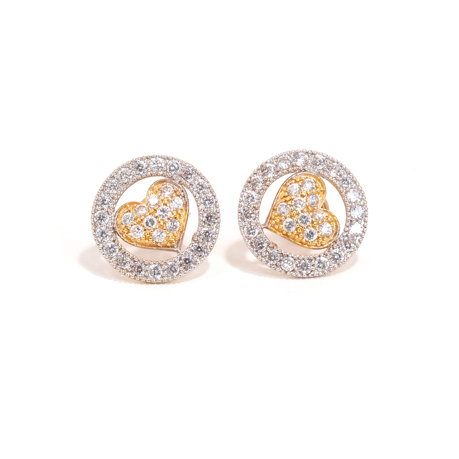 18K Gold Earrings with Two-Tone Heart Circle CZ Design - Shop Now