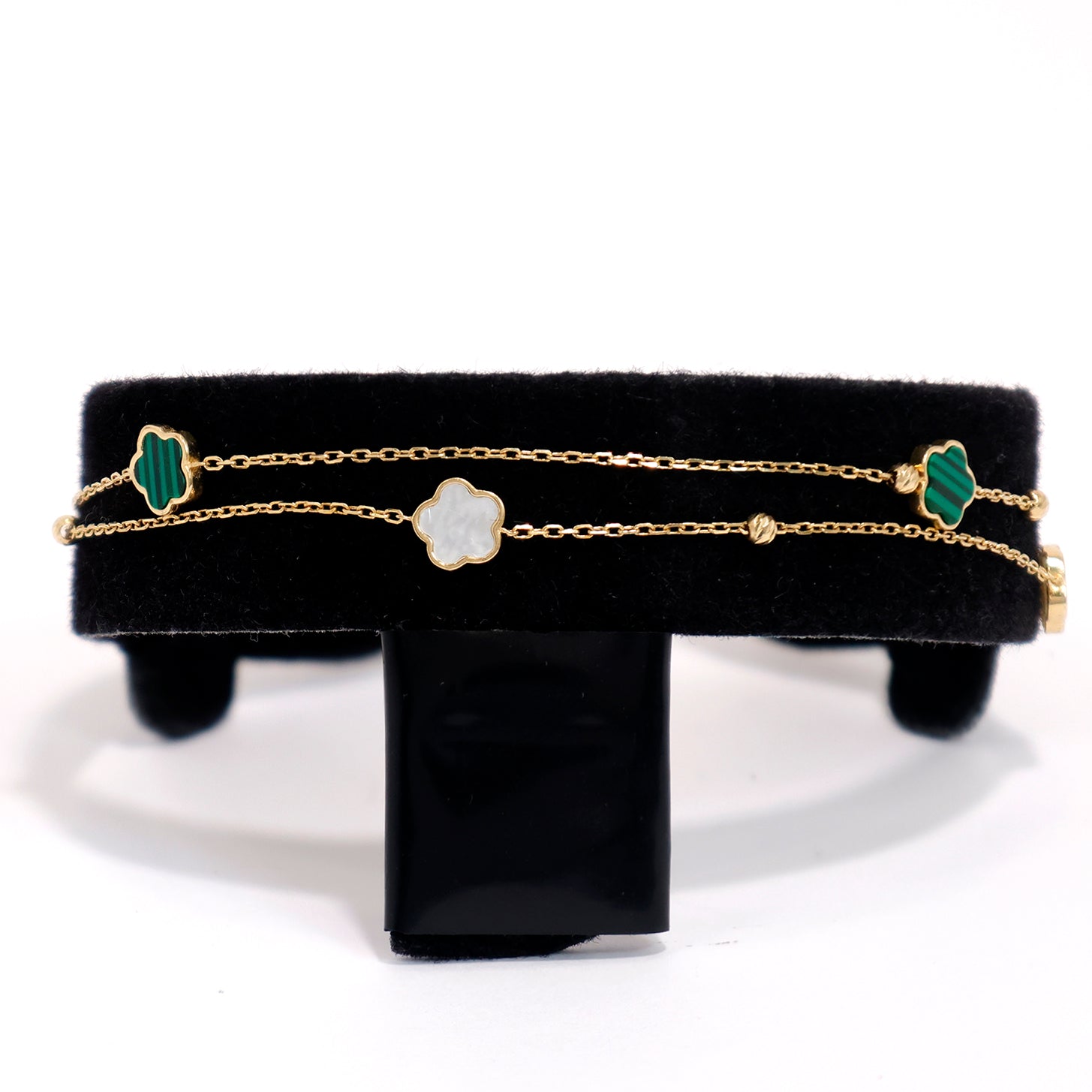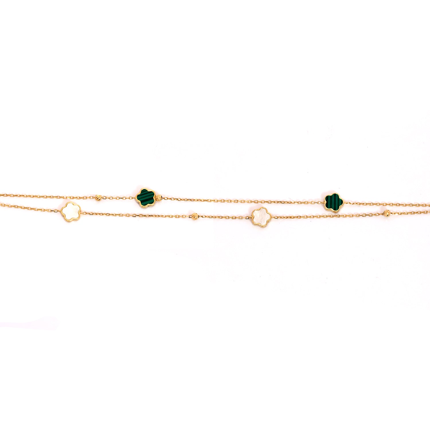 18K Gold Bracelet – Green Malachite Clover Station Design – Zero Making Charge