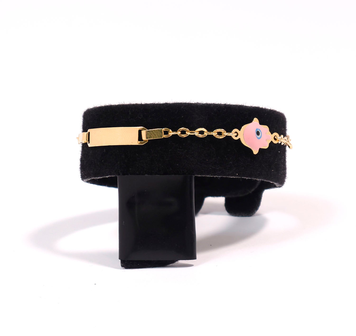 18K Gold Bracelet – Pink Evil Eye ID Design – Zero Making Charge