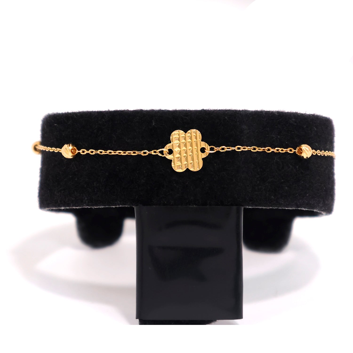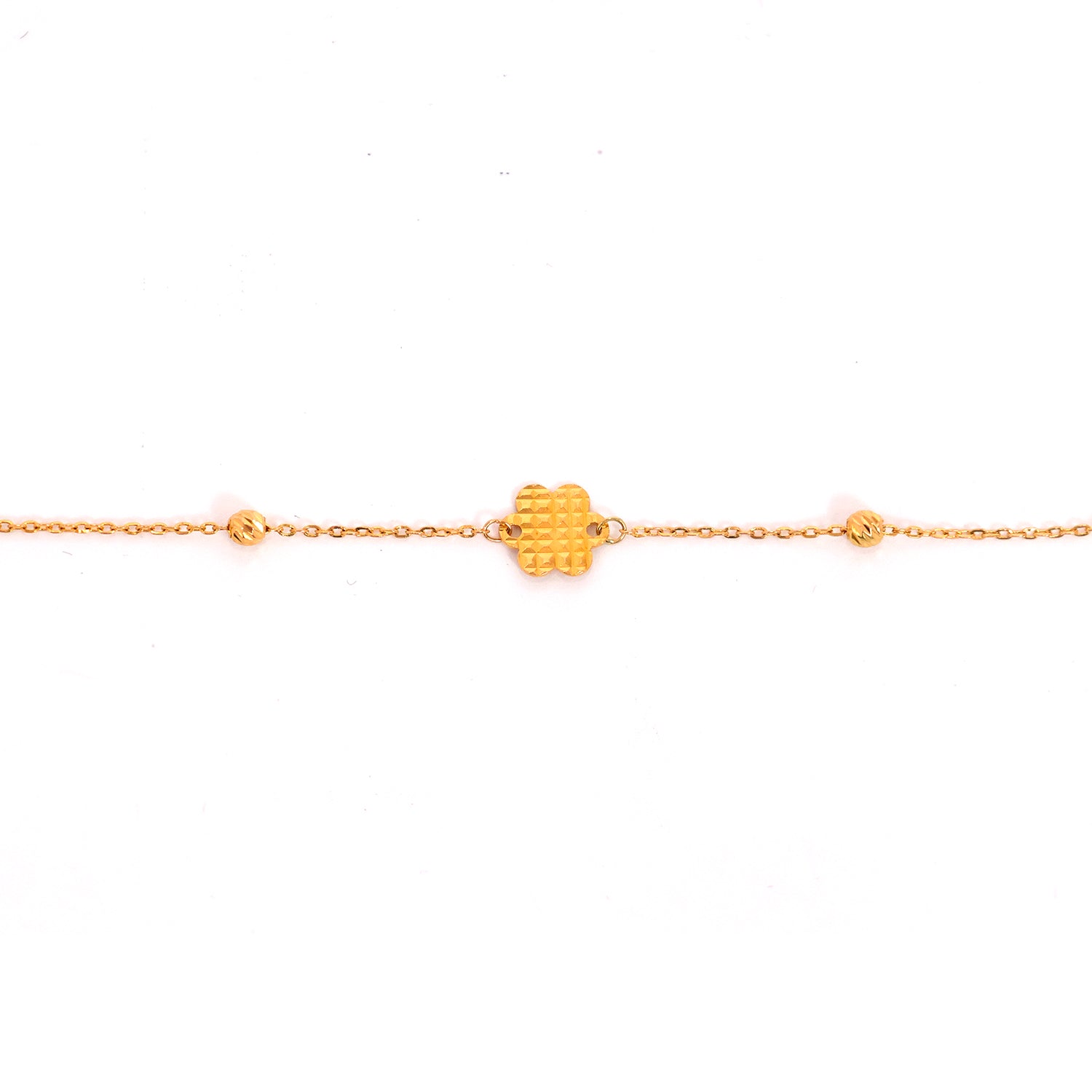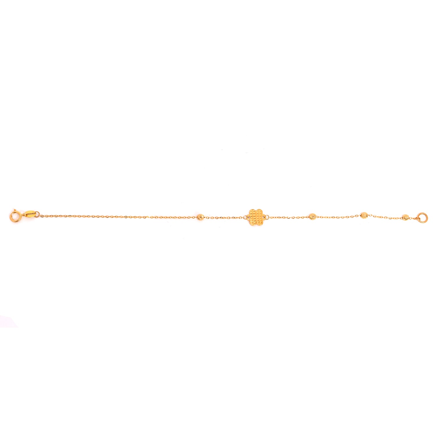 This 21K yellow gold bracelet features a minimal bracelet featuring a geometric textured gold charm and bead stations. Lightweight and comfortable at approximately 0.88 grams, it is ideal for everyday wear or gifting. Enjoy transparent pricing with Zero Making Charge on this design.