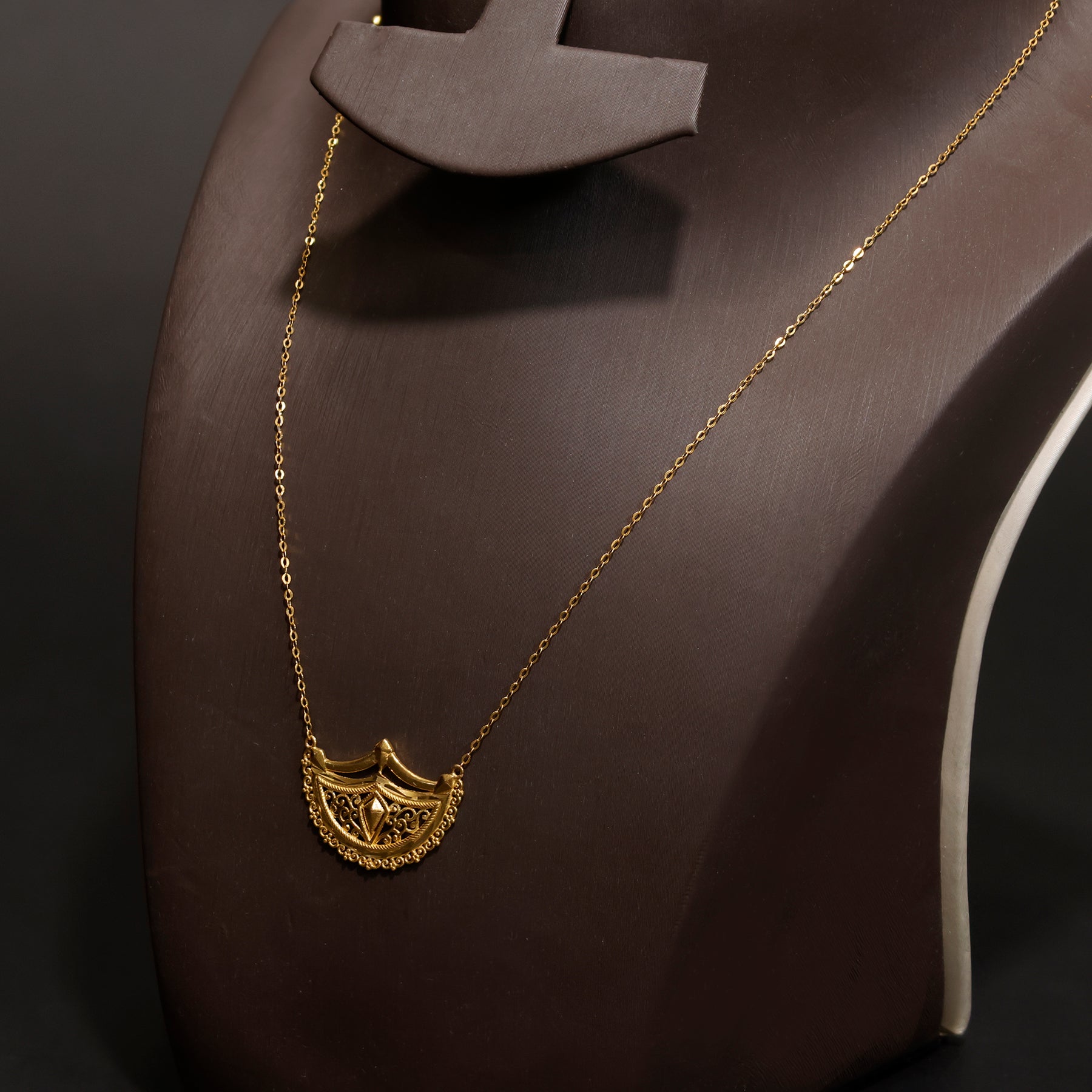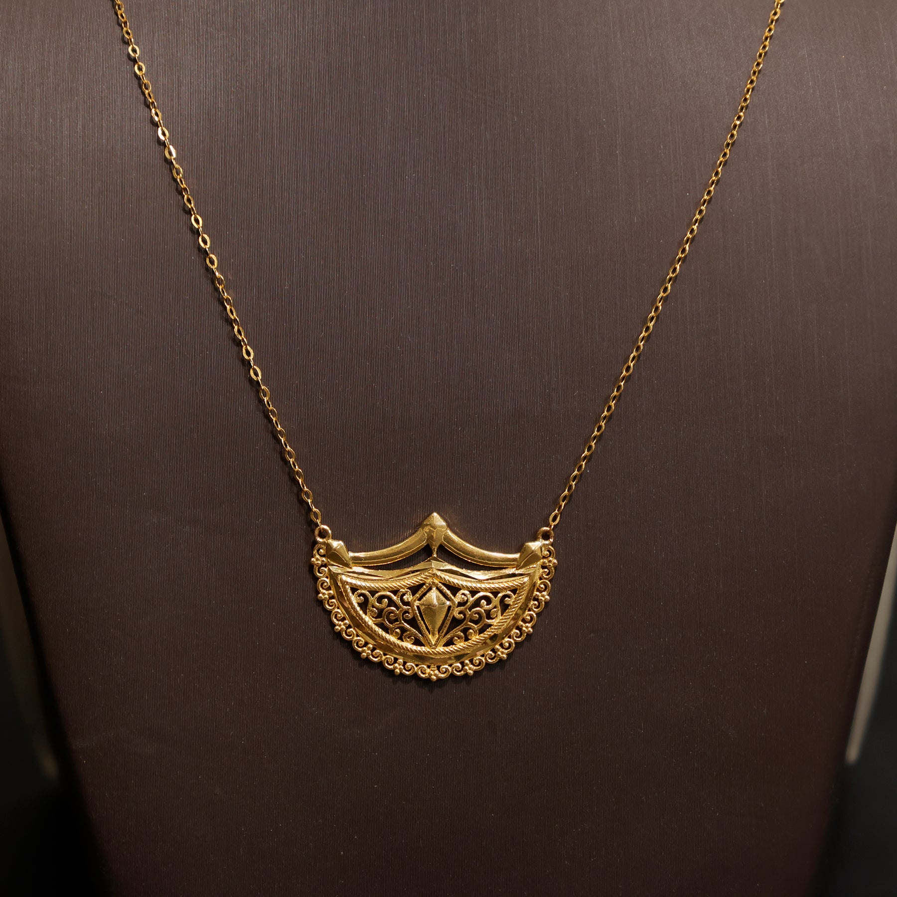 21K Gold Necklace - Crescent Filigree Pendant Design - Zero Making Charge
