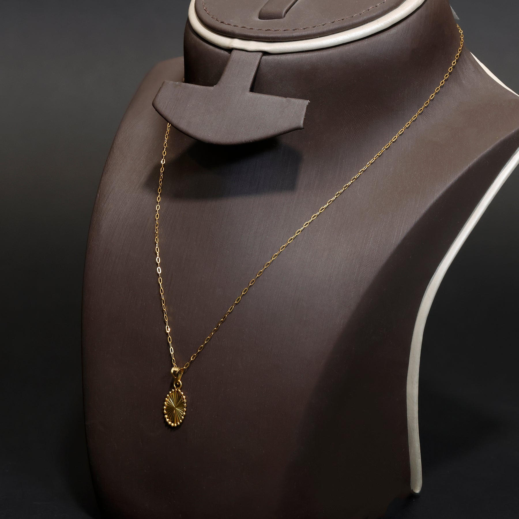 21K Gold Necklace with Sunburst Oval Design Pendant- Zero Making Charge
