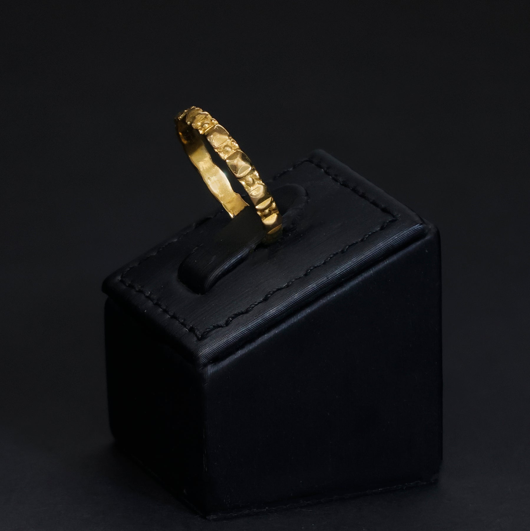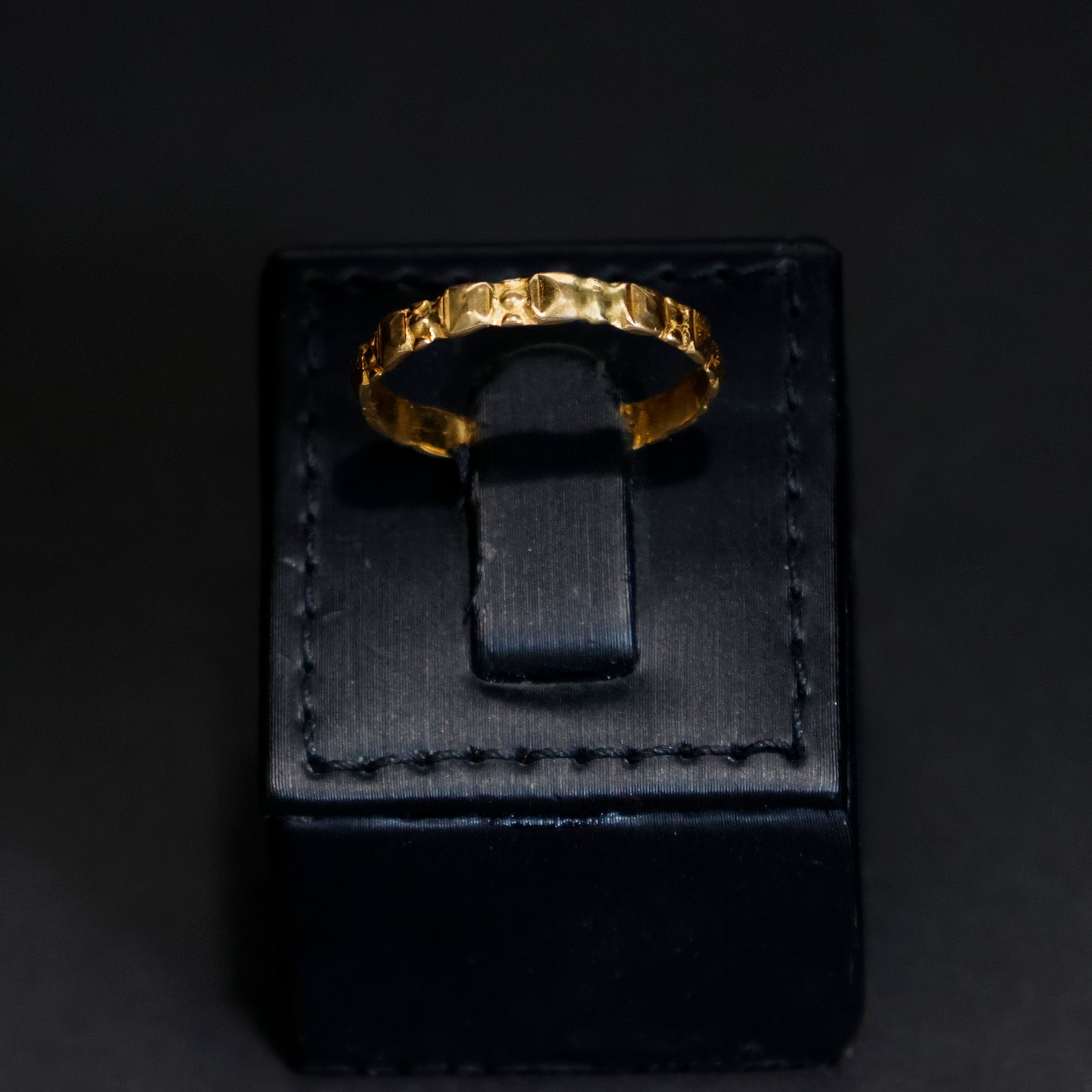 Elevate your everyday style with this elegant 21K Gold Ring, crafted with a unique textured band design that adds character, shine, and sophistication. The hammered-style pattern creates a beautiful play of light, giving the ring a bold yet refined look.