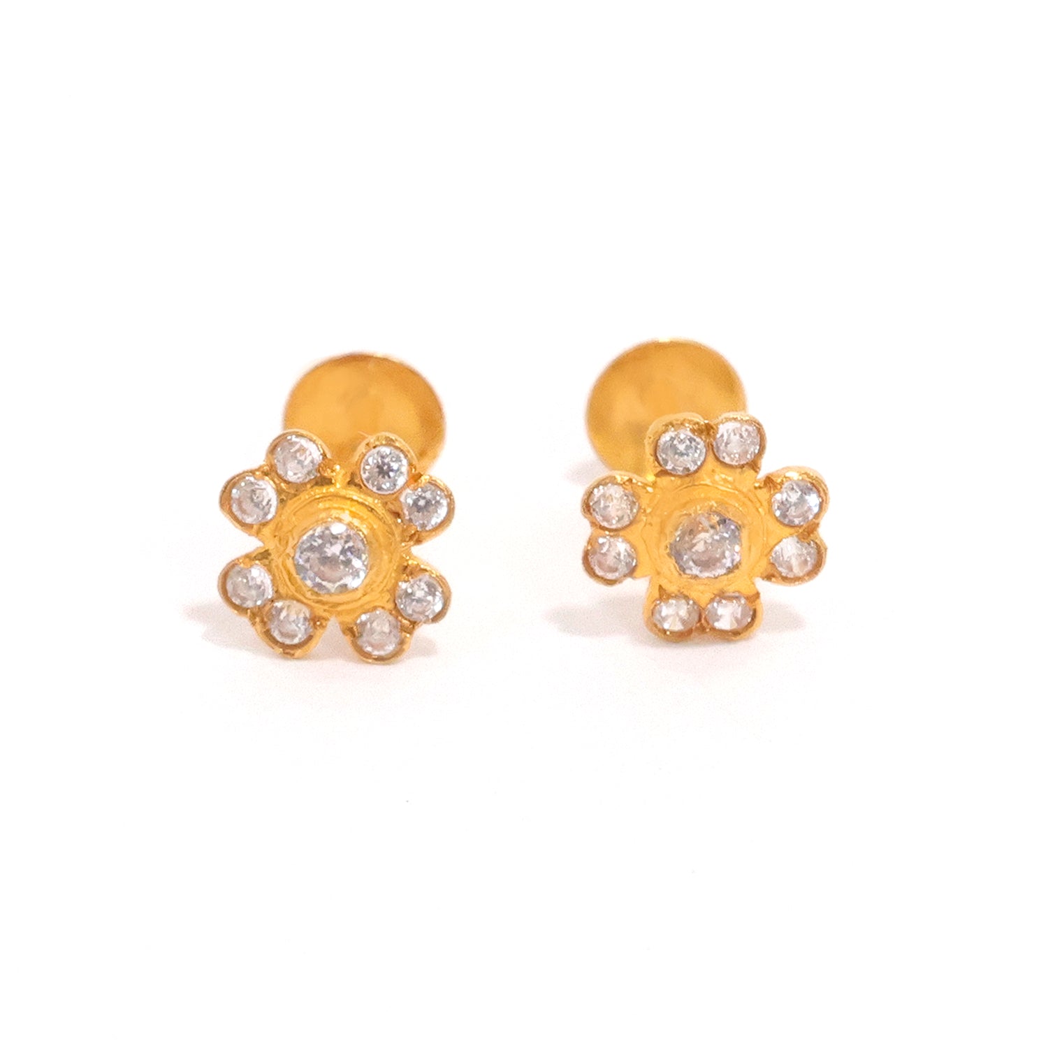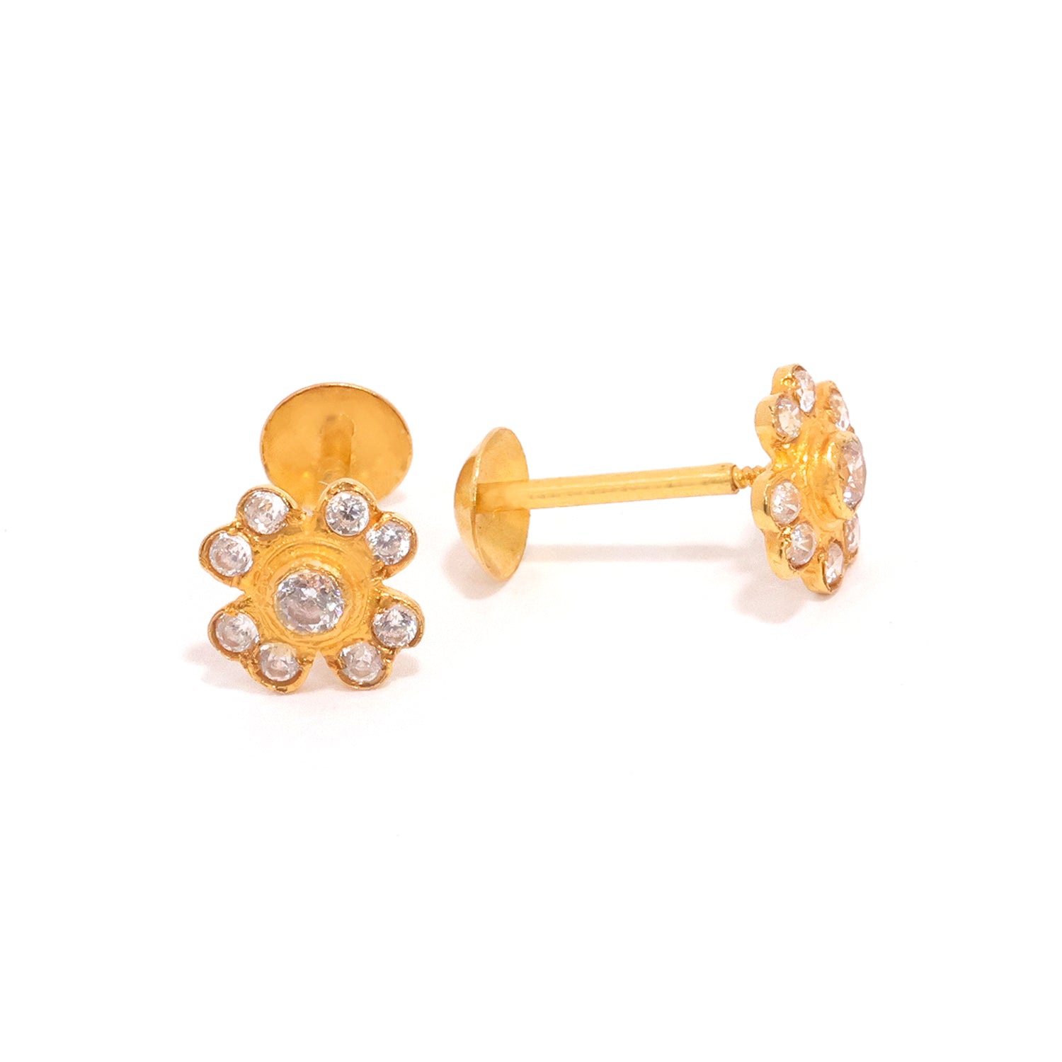 18K Gold Earrings with Mini Flower CZ Stud Design - Zero Making Charge