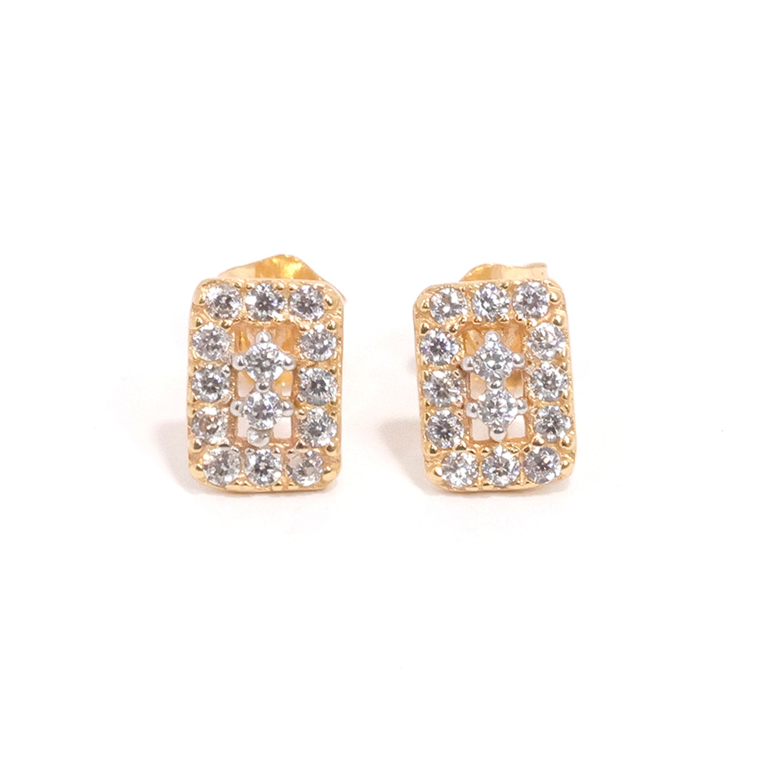 AFE0690718K Gold Mini Earrings - Rectangular Pave Design - Zero Making Charge