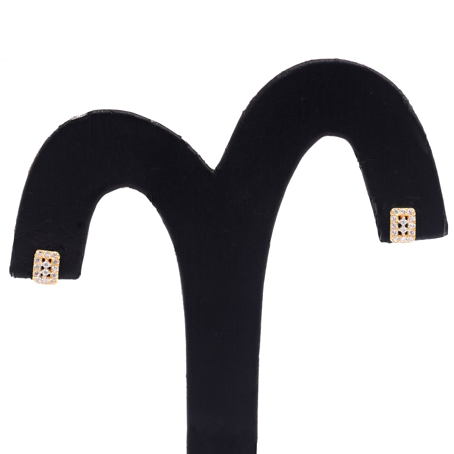 18K Gold Mini Earrings - Rectangular Pave Design - Zero Making Charge