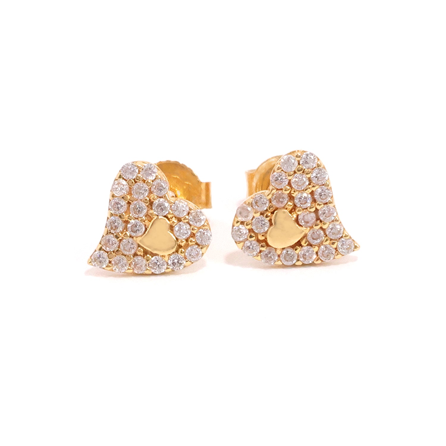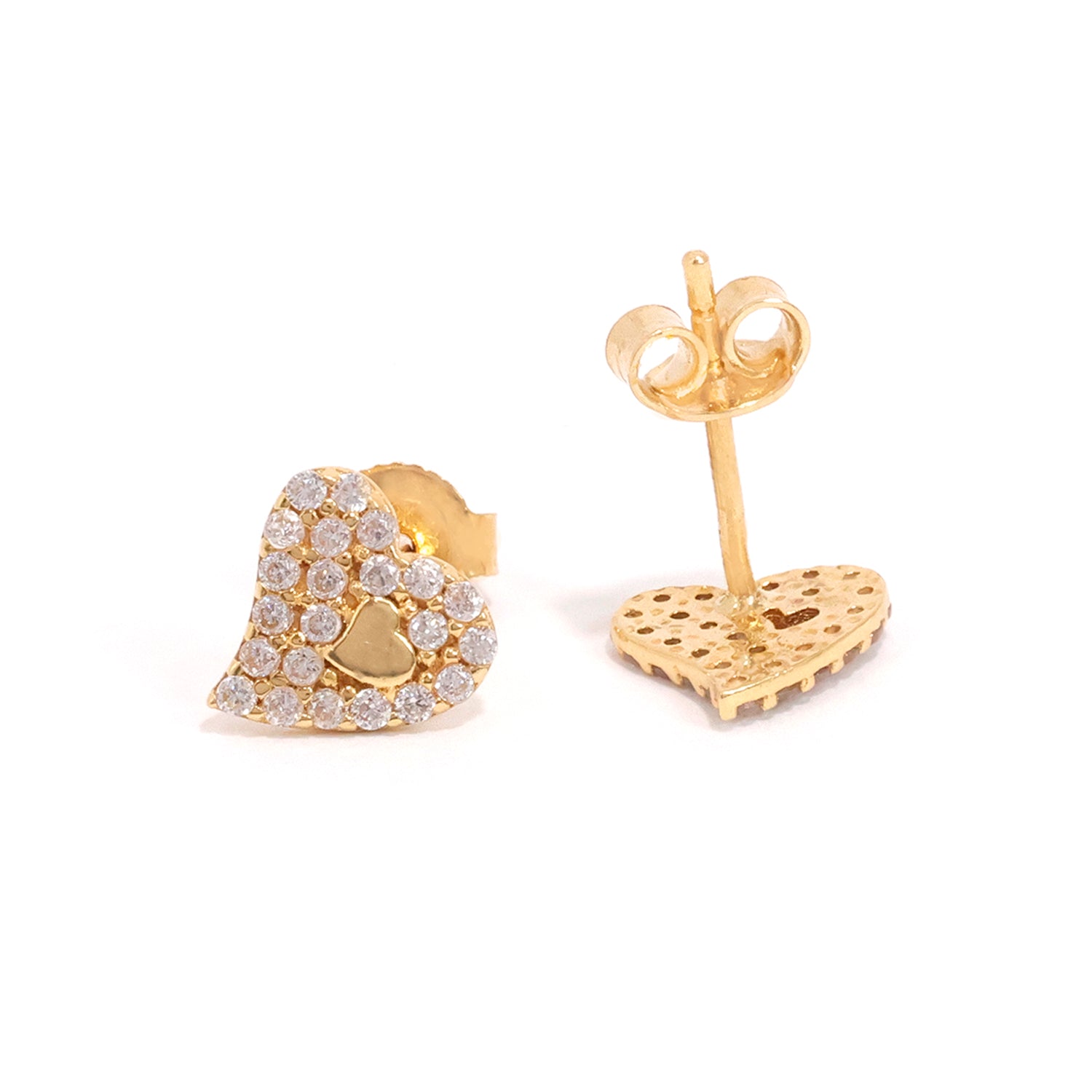 18K Gold Love Earrings with Heart CZ Design - Zero Making Charge