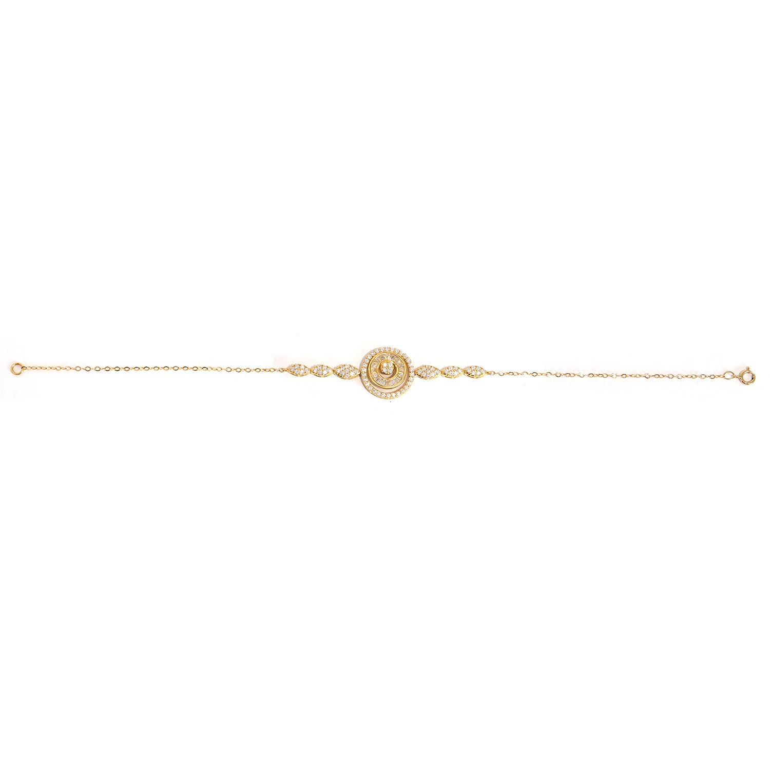 AFB0707318K Gold Bracelet – Circular Halo Centerpiece with Sparkling Stone Accents – Zero Making Charge