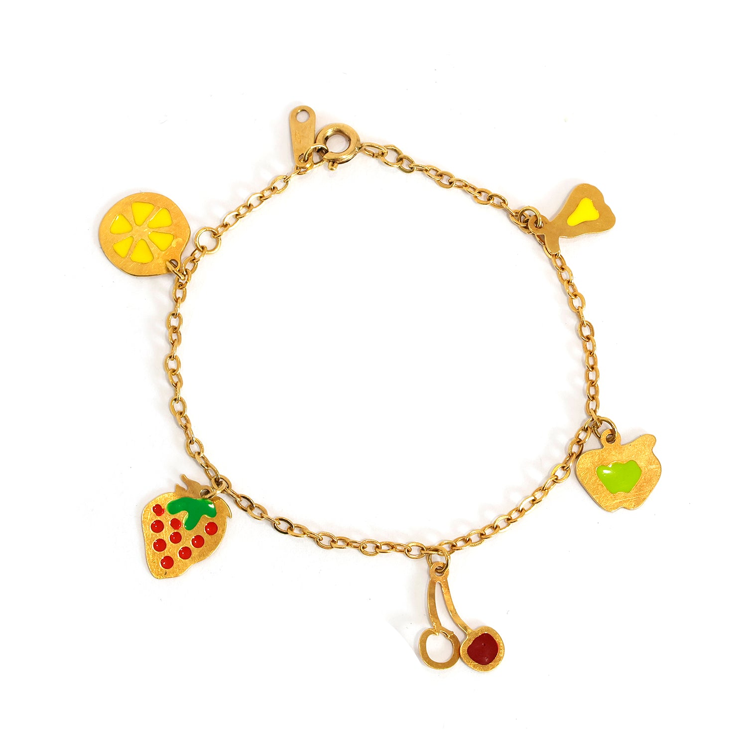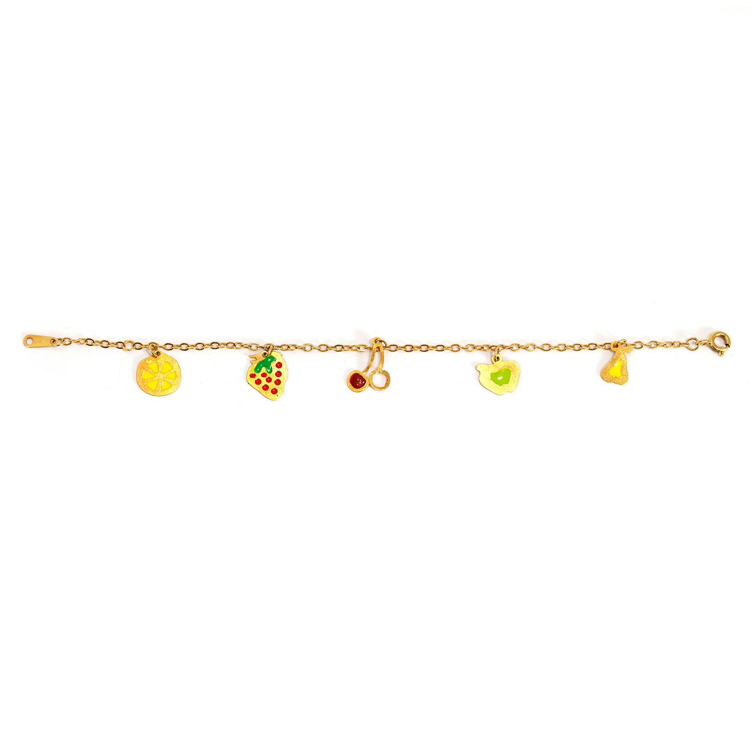 18K Gold Bracelet – Colorful Fruit Charm Details – Zero Making Charge