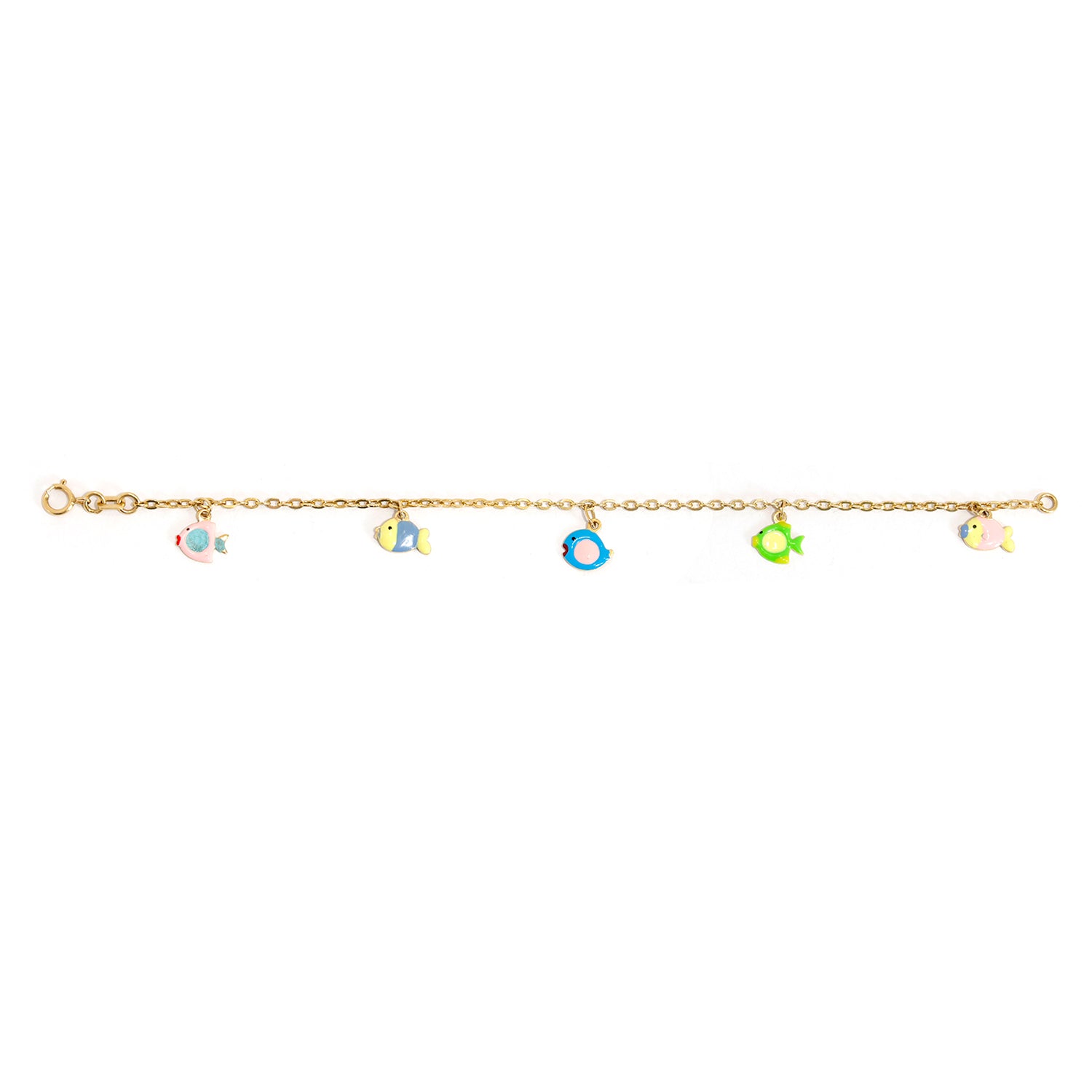 AFB0619118K Gold Bracelet – Delicate Enamel Fish Charm Accents – Zero Making Charge