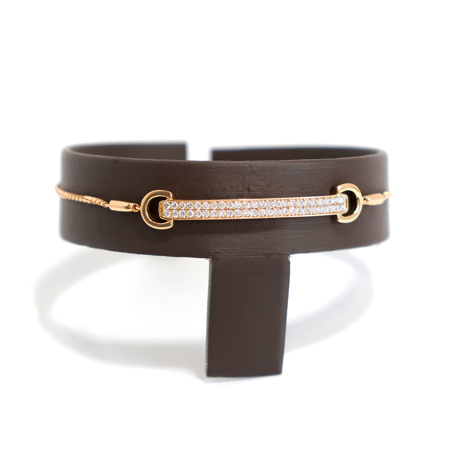 18K Gold Bracelet – Pavé bar centerpiece with horseshoe links – Zero Making Charge