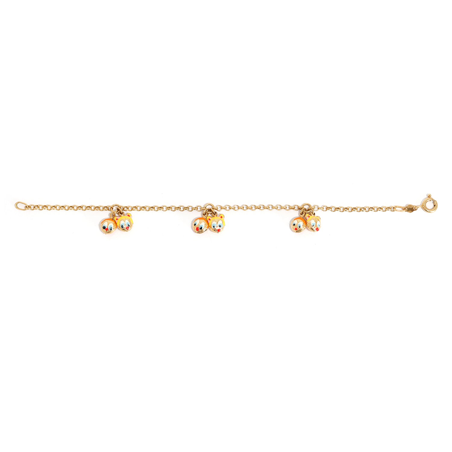 Refined yet playful, this 18K gold bracelet highlights playful enamel face charms with bead accents for an elevated everyday finish.