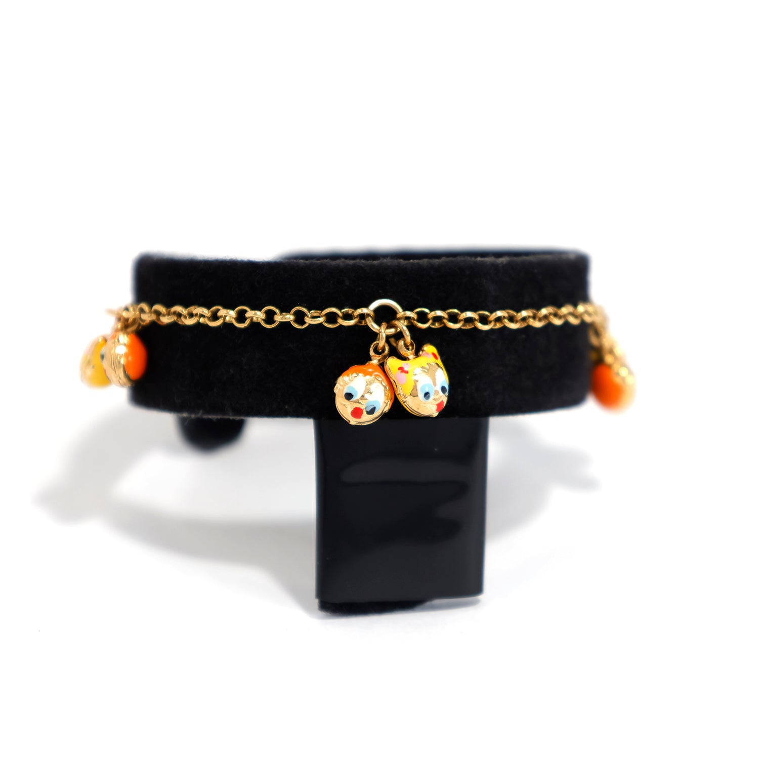 18K Gold Bracelet – Playful Enamel Face Charms with Bead Accents – Main View