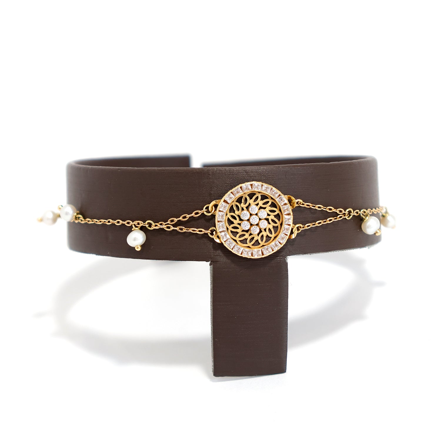 This 18K gold bracelet is designed with a row of dangling leaf charms that add gentle movement, offering a subtle sparkle that elevates everyday styling.