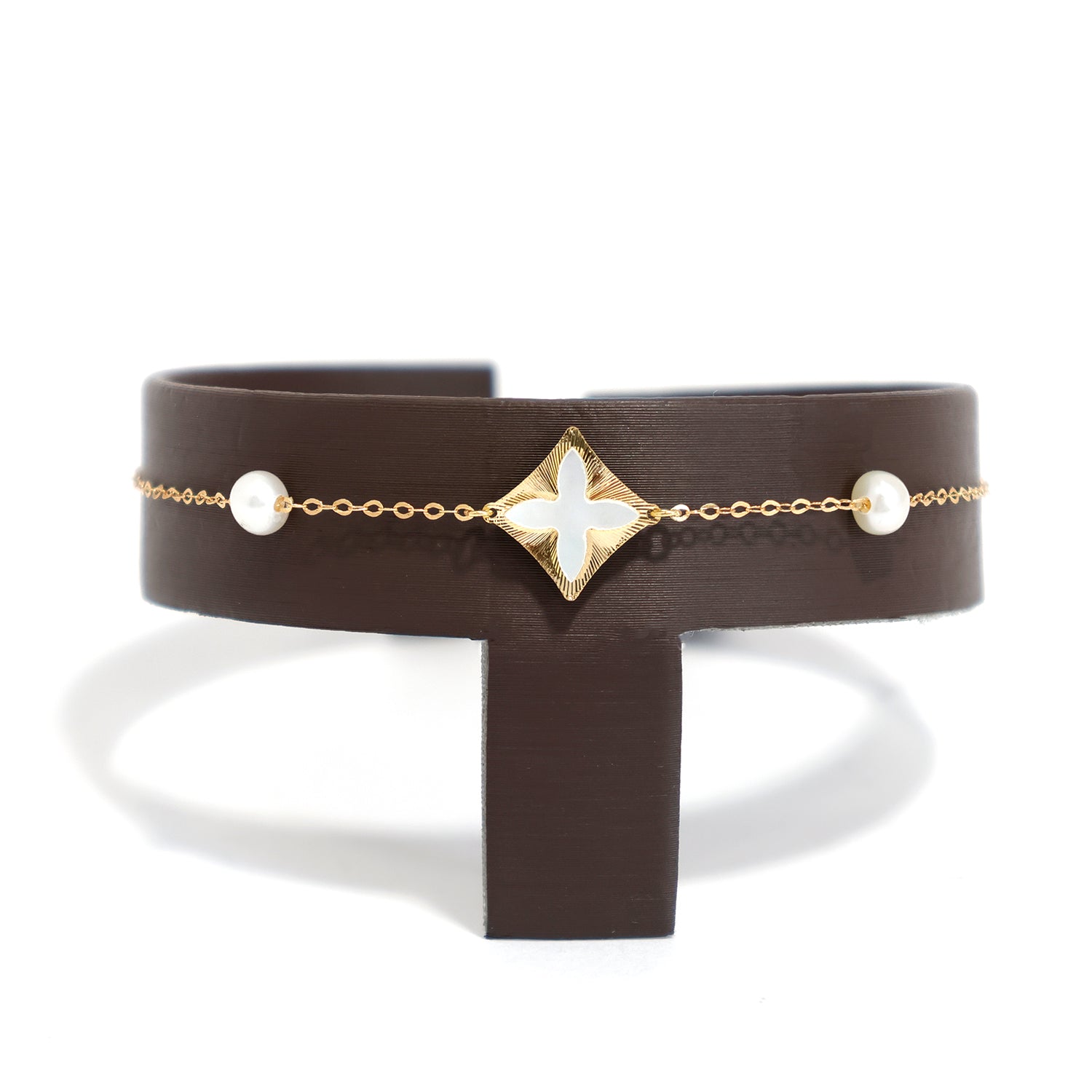 • Signature look highlighted by a sleek central star-shaped motif framed by two pearl-like stations.