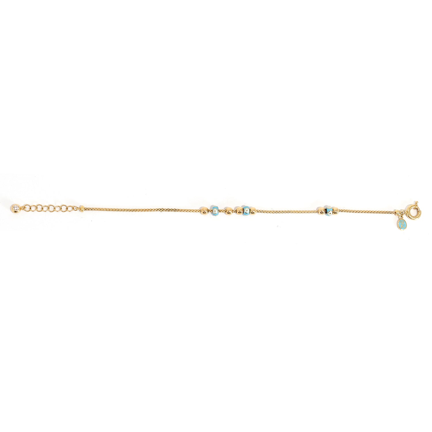 18K Gold Bracelet – Slim Chain with Blue Patterned Bead Accents – Zero Making Charge