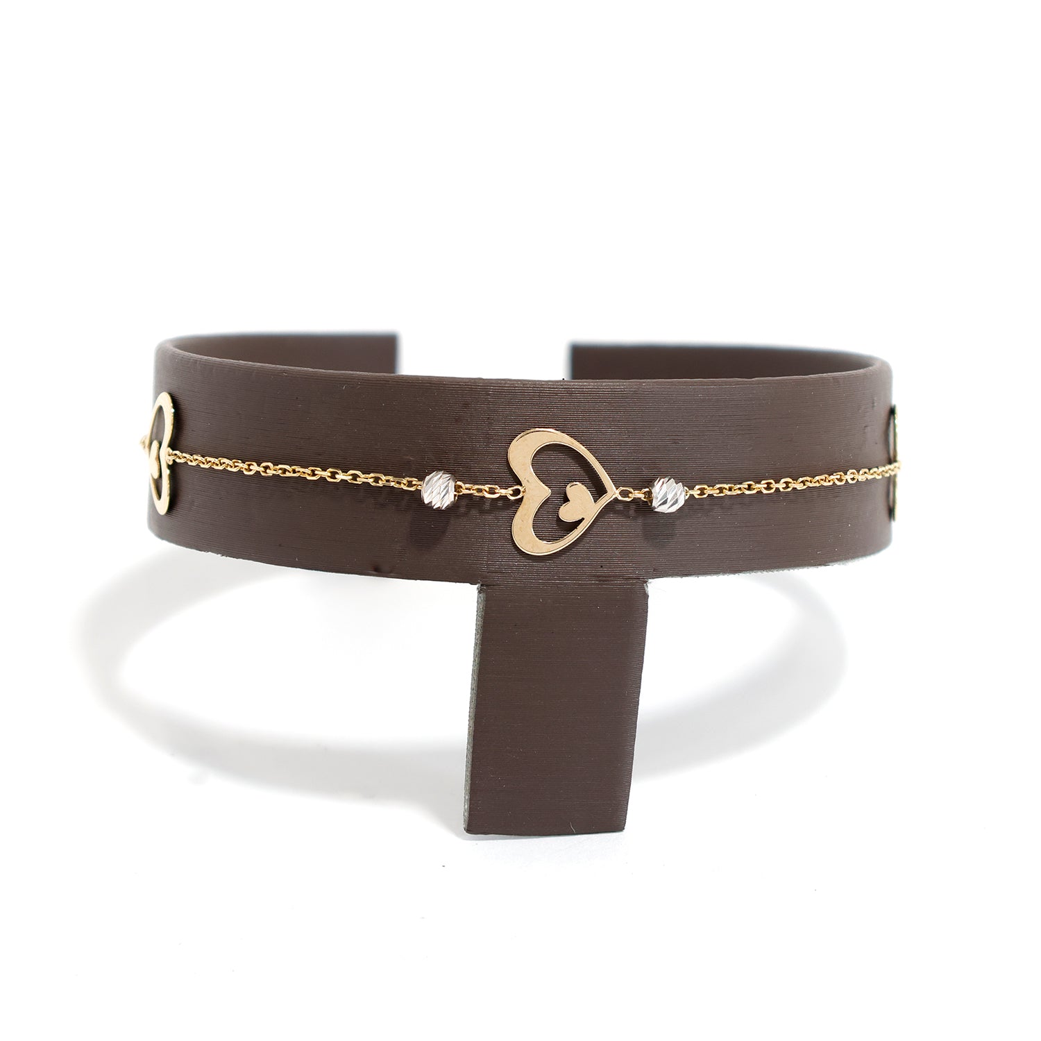 18K Gold Bracelet – Two-tone open heart motif with textured beads – Zero Making Charge