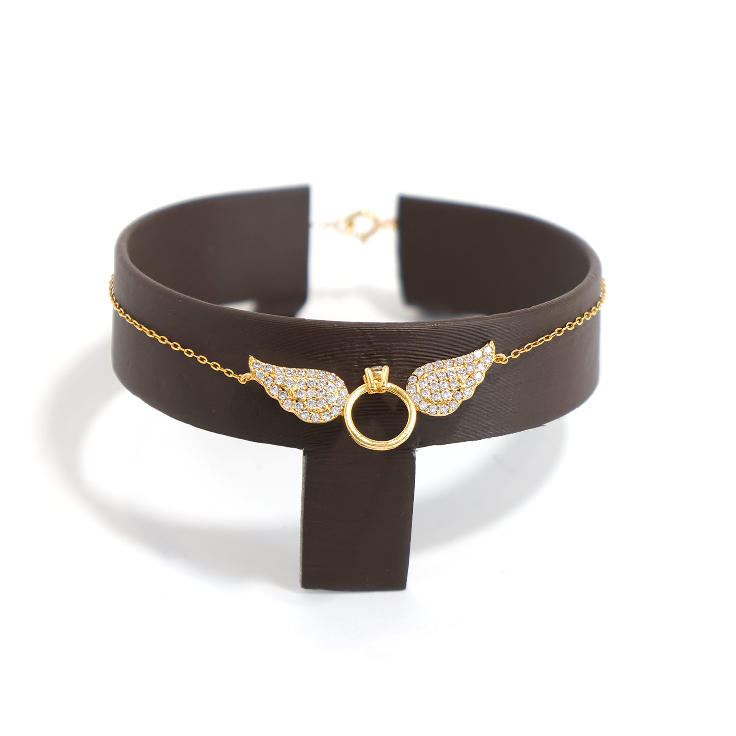 18K Gold Bracelet – Winged circle motif with pavé wings – Zero Making Charge