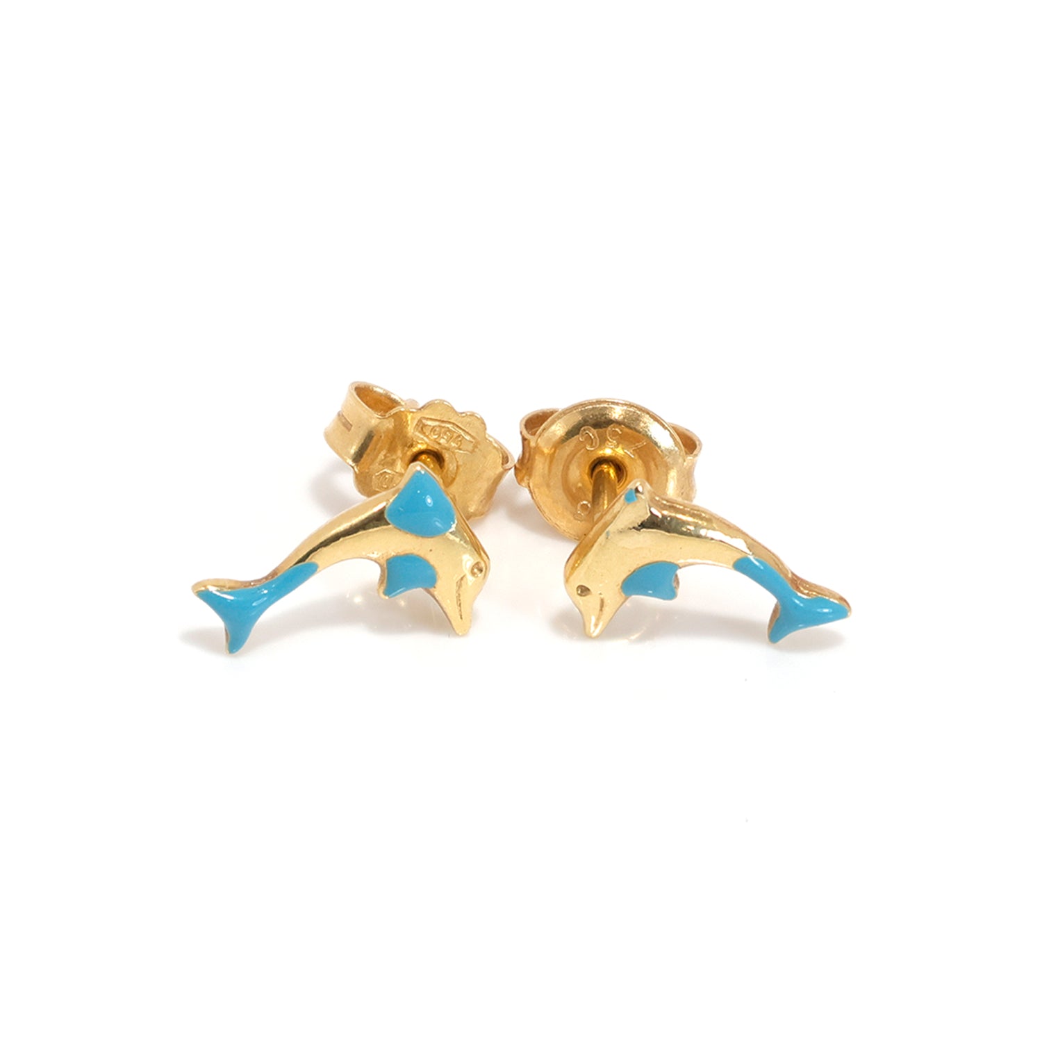 BG8000253818K Gold Dolphin Stud Earrings with Blue Enamel – Zero Making Charge