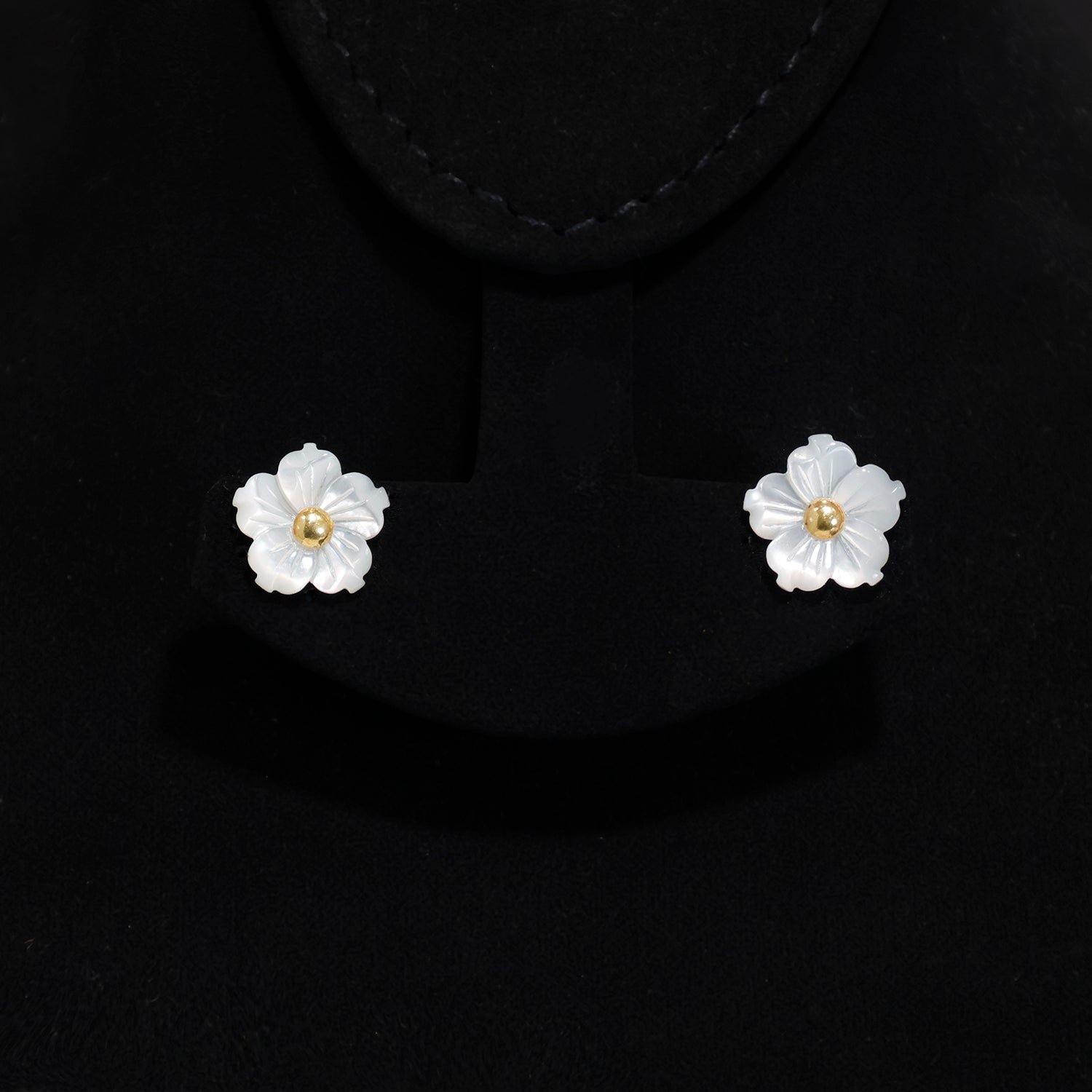 18K Gold Floral Stud Earrings with Pearl Finish – Zero Making Charge