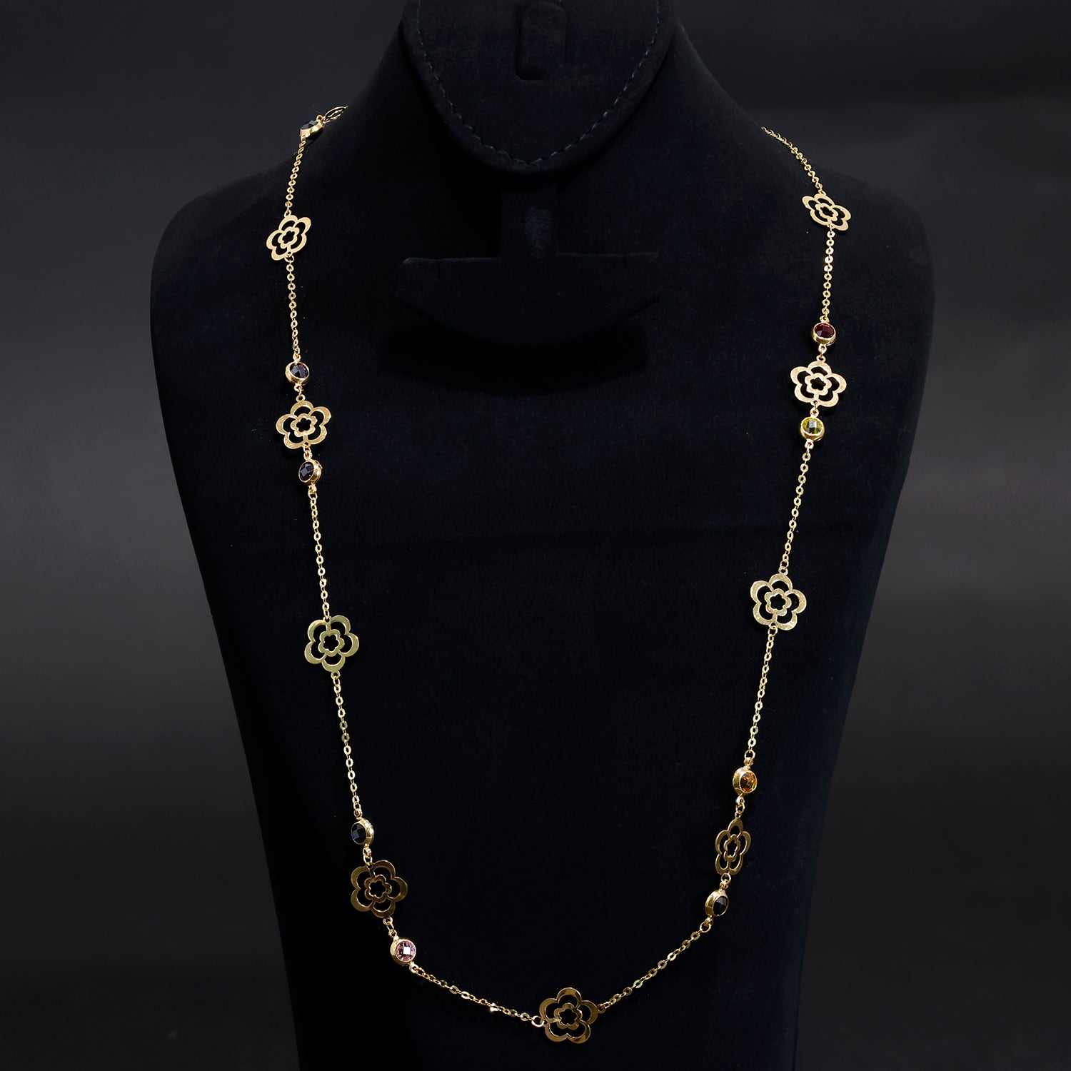 18K Gold Long Necklace - Floral Design with Stone accents – Zero Making Charge