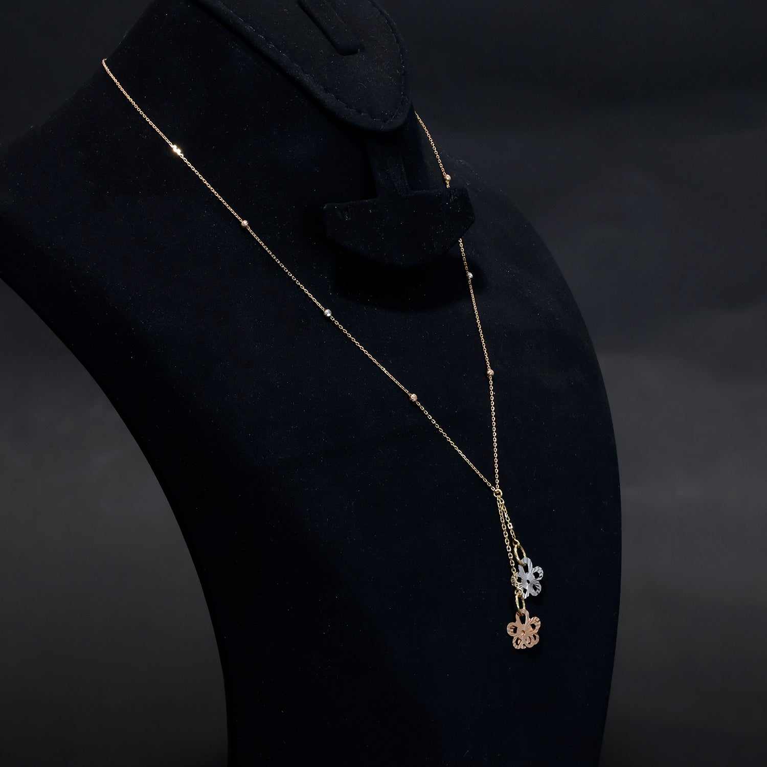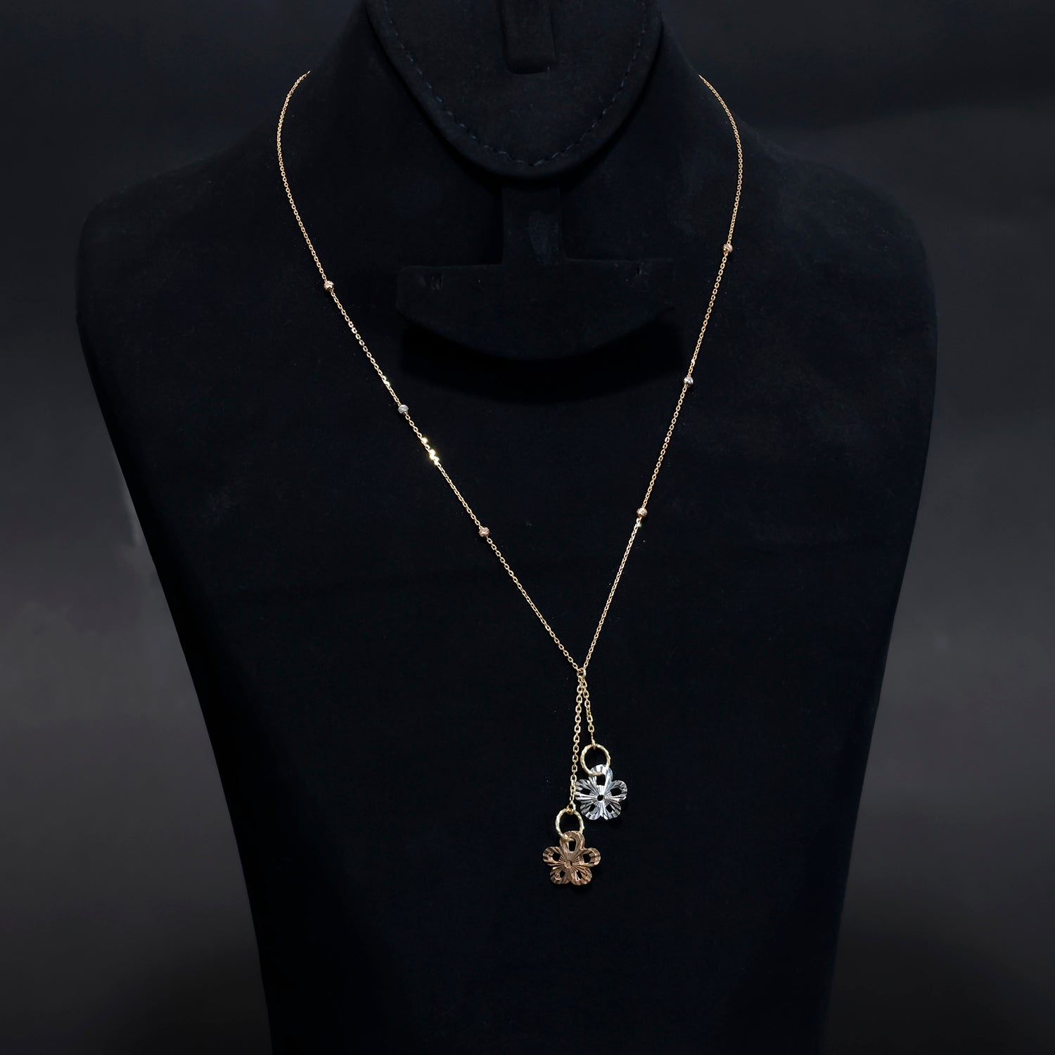 18K Gold Two tone Dual Flower Charm Necklace – Zero Making Charge