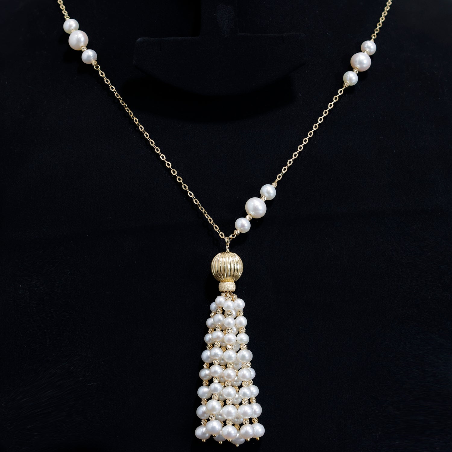 18K Gold Long Necklace with Beautiful Pearl Drop Design - Zero Making Charge