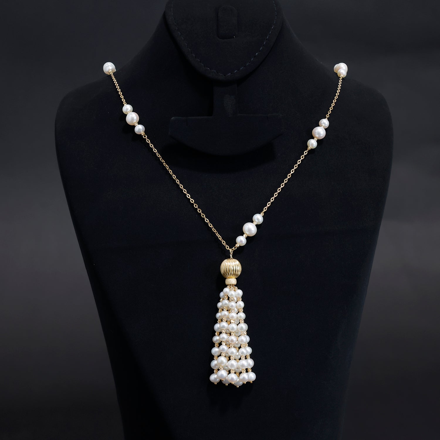 AFN0311818K Gold Long Necklace with Beautiful Pearl Drop Design - Zero Making Charge