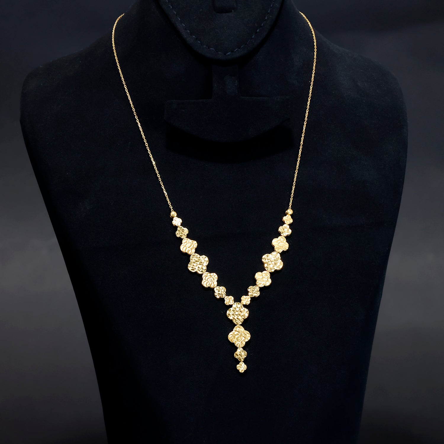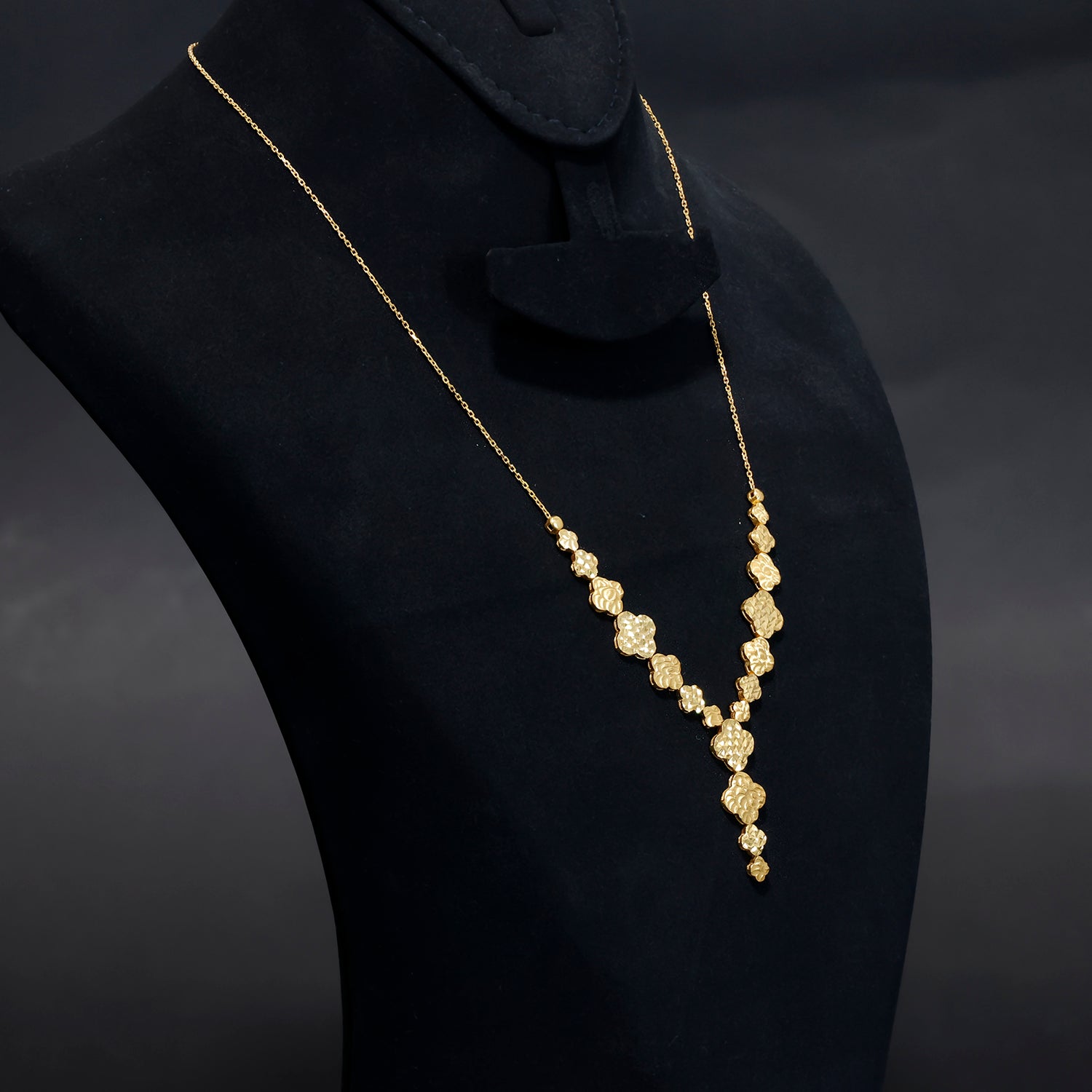 18K Gold Textured Floral Necklace – Elegant Drop Design – Zero Making Charge