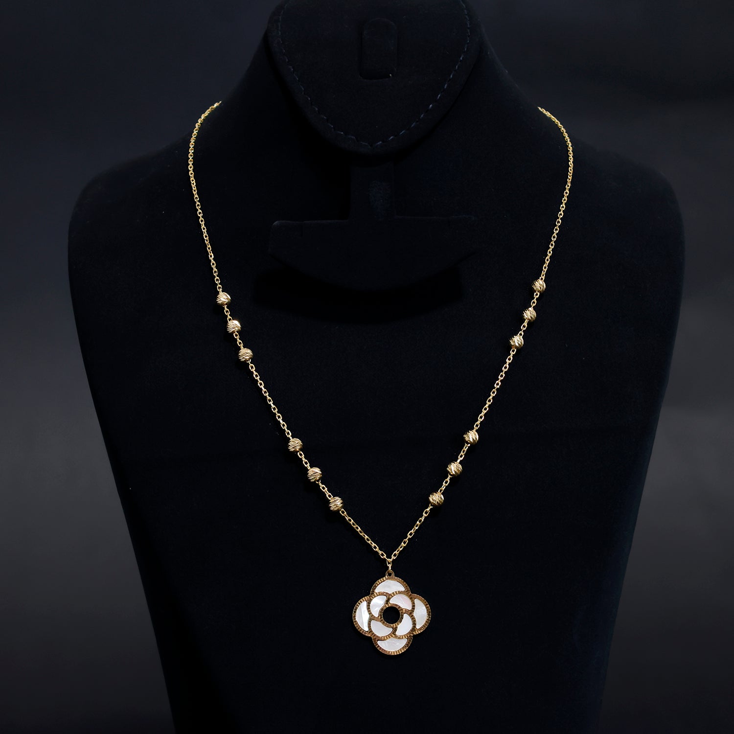18K Gold Necklace – Clover Design with Mother of Pearl – Zero Making Charge
