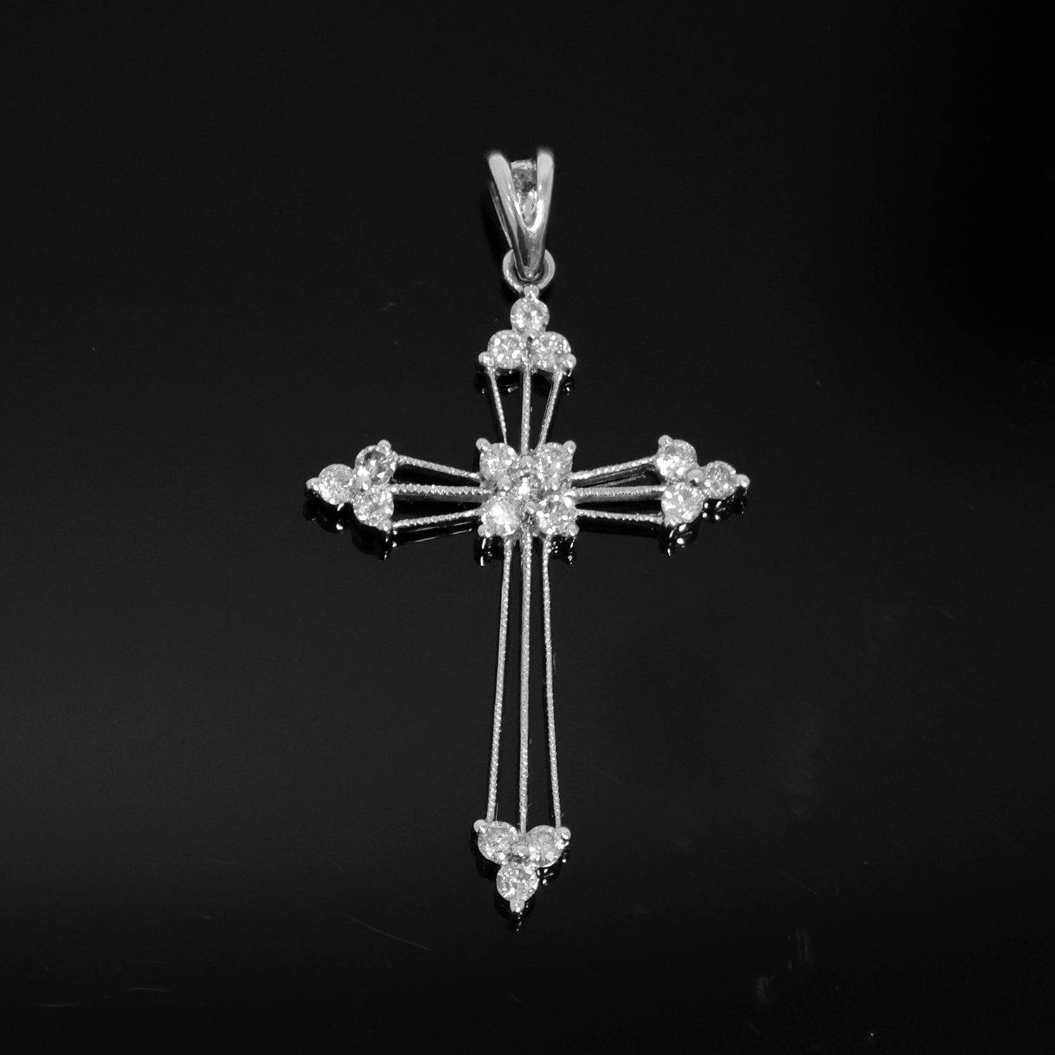 This White 18k gold pendant features a classic cross motif pendant design. It is crafted for everyday elegance and comfortable wear.