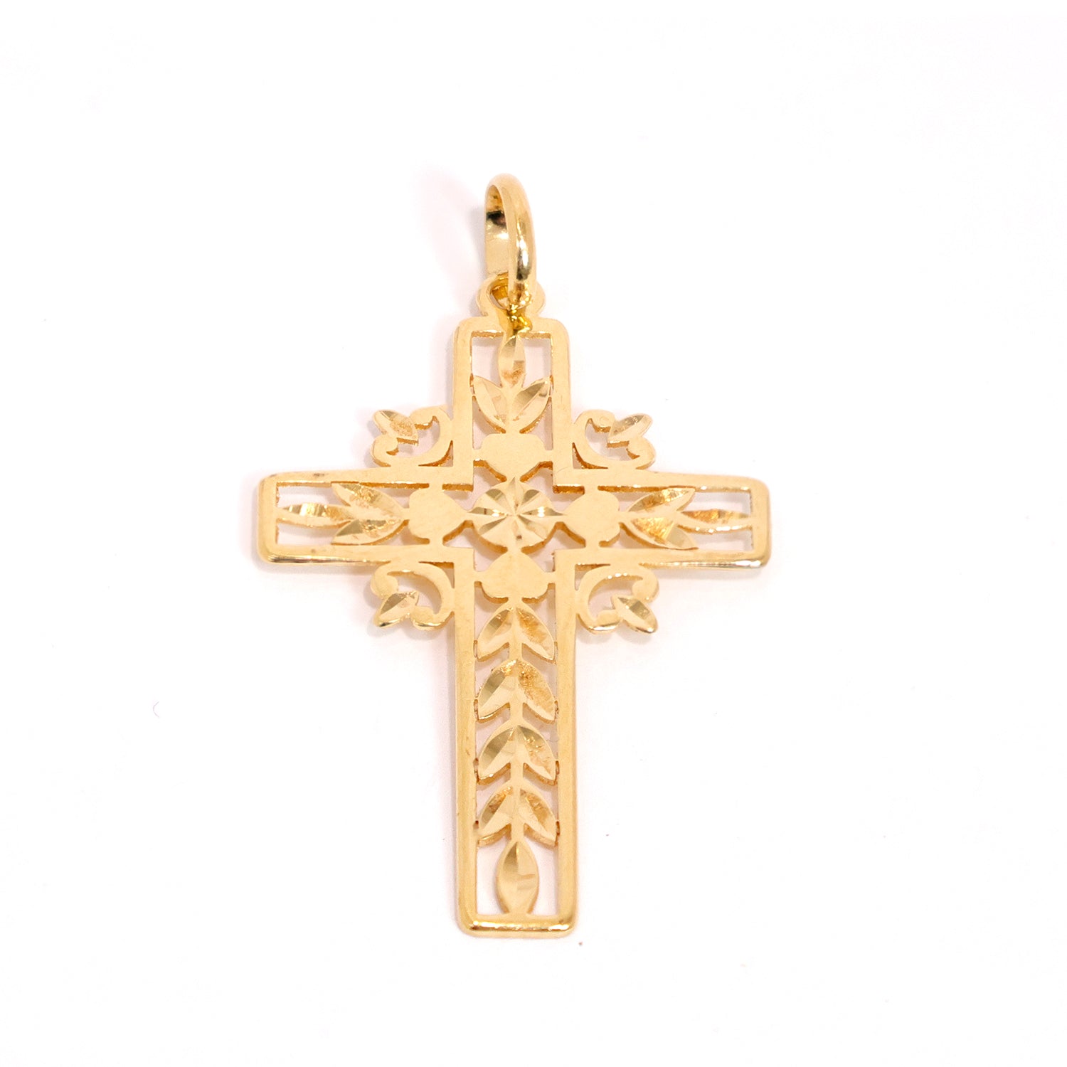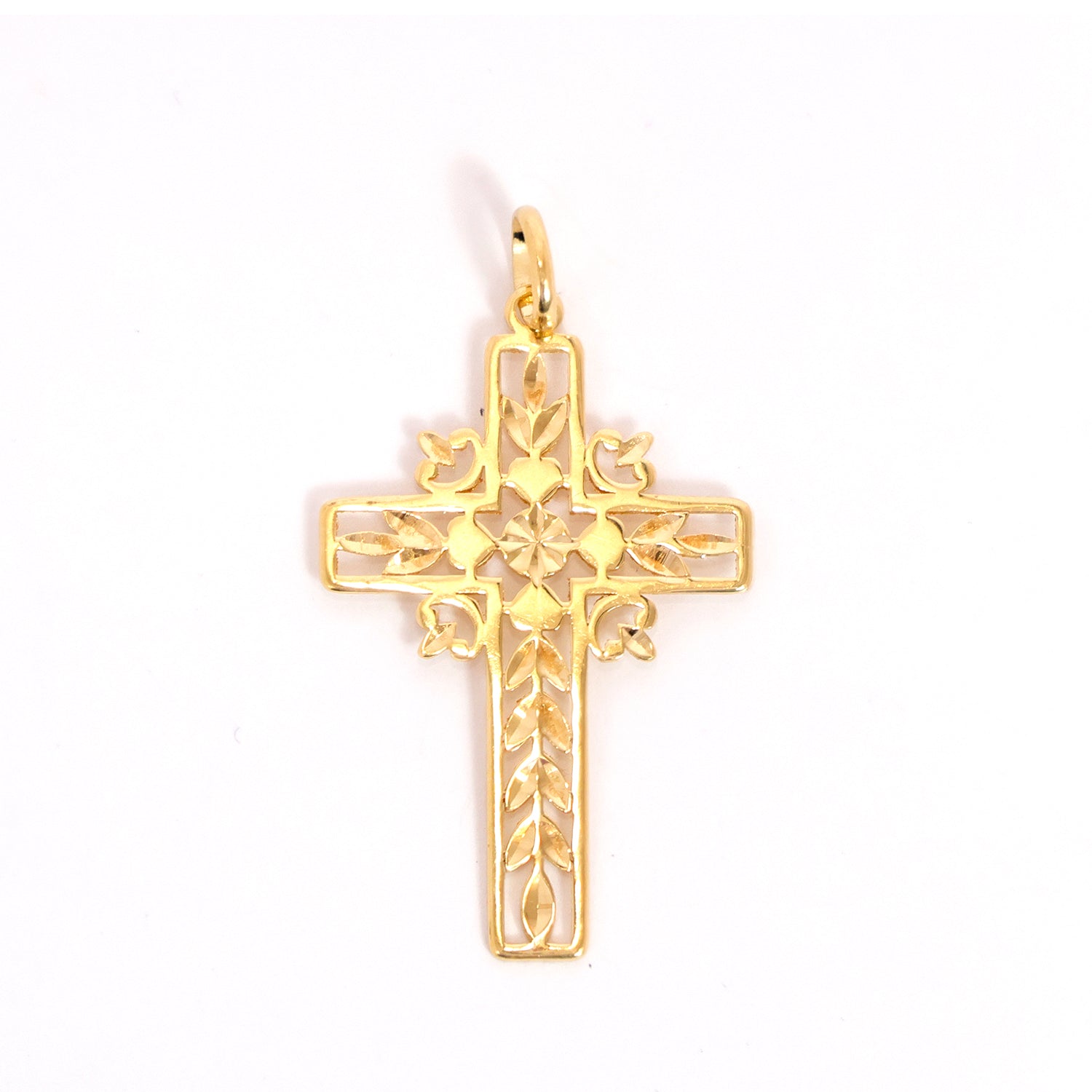 This Yellow 18k gold pendant features a classic cross pendant design. It is crafted for everyday elegance and comfortable wear.