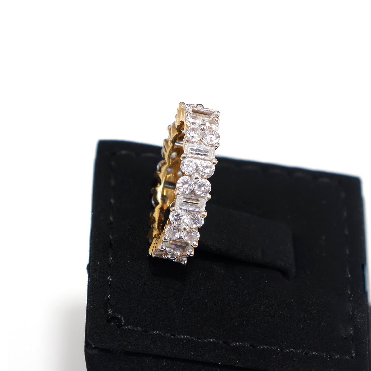 Stunning 18K gold eternity band ring set with sparkling CZ stones all around. Elegant, timeless and perfect for daily wear or gifting.