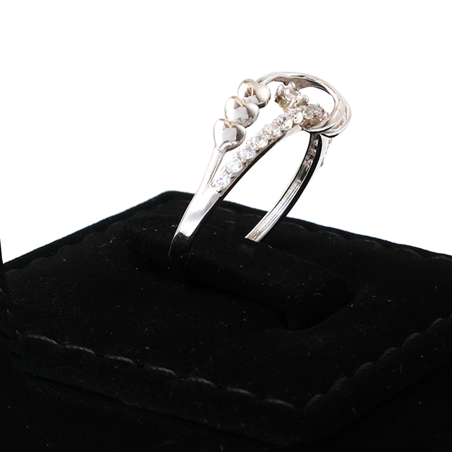 This 18K White gold ring features a open circle motif with a subtle heart accent and pavé shine, offering a bright finish and a clean, elegant look that suits both daily wear and occasions.