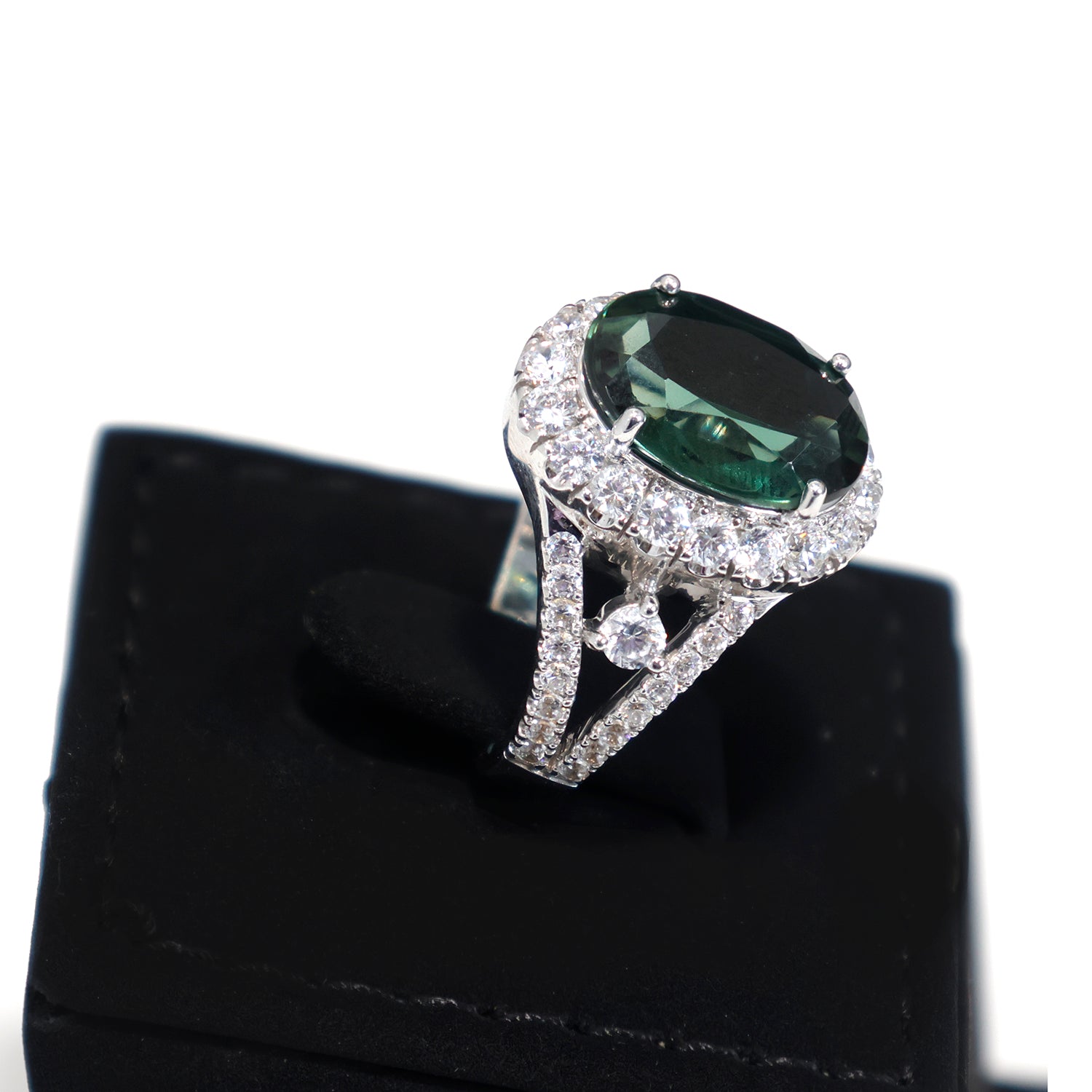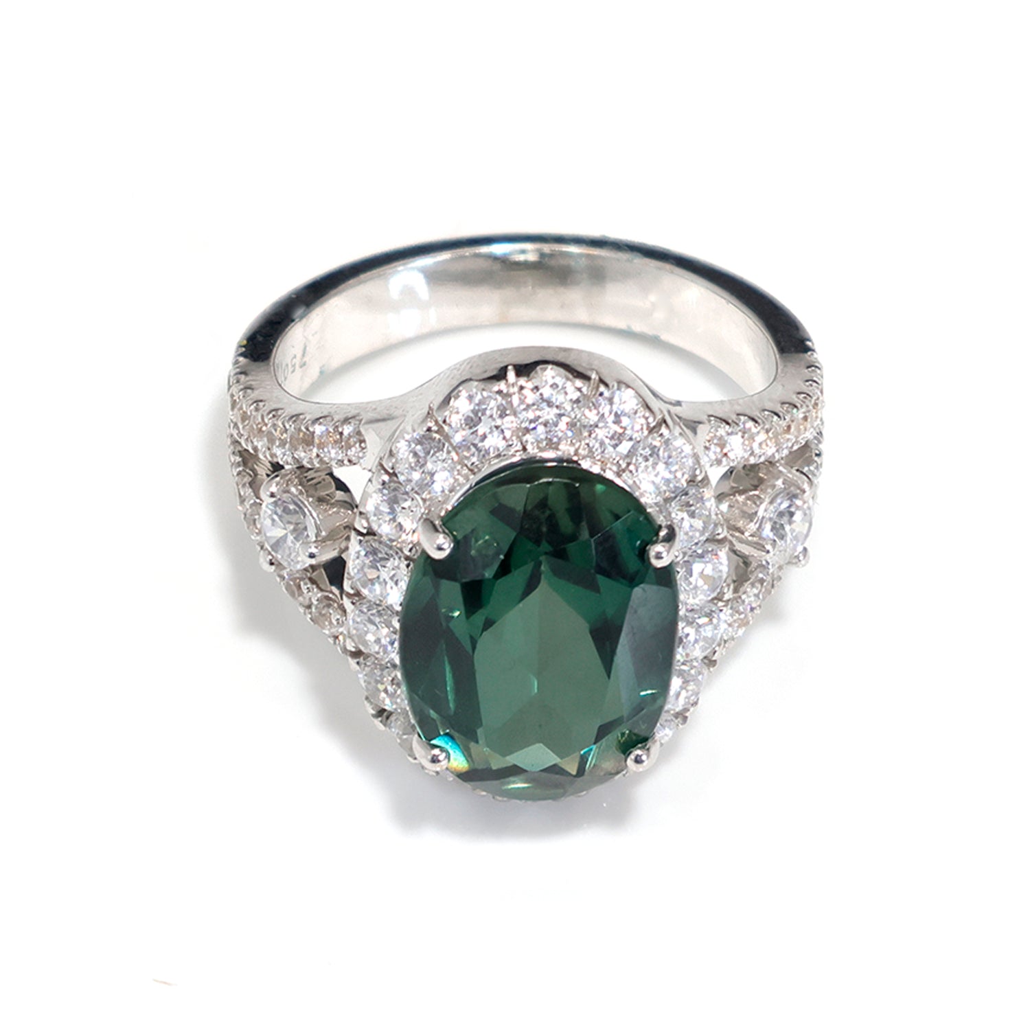18K Gold Ring - White Gold Green Tourmaline CZ Halo Design – Zero Making Charge