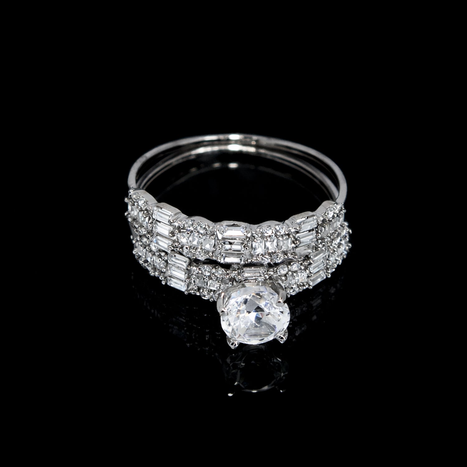 18K White Gold Ring with Baguette & Round Stones – Main View