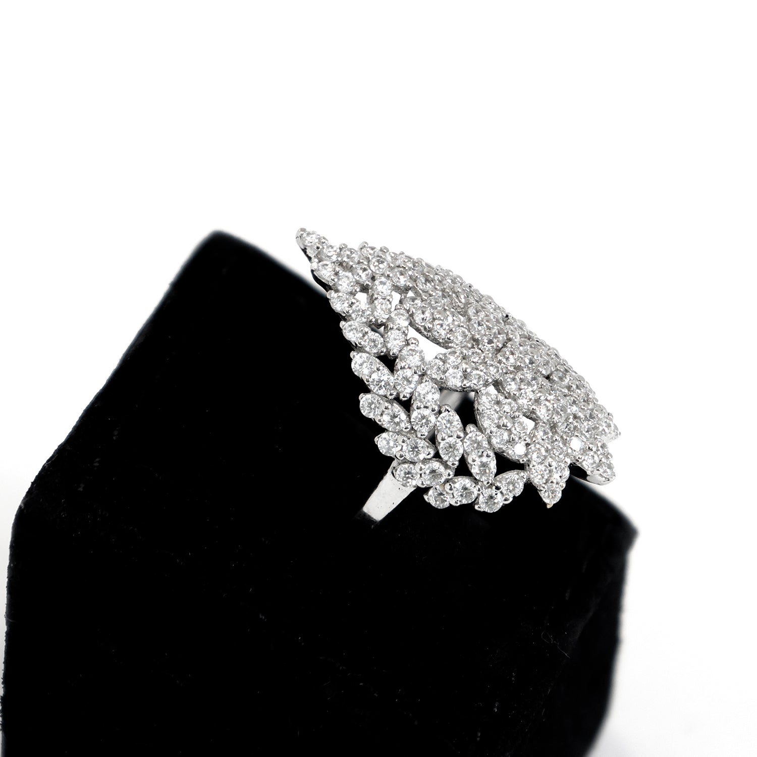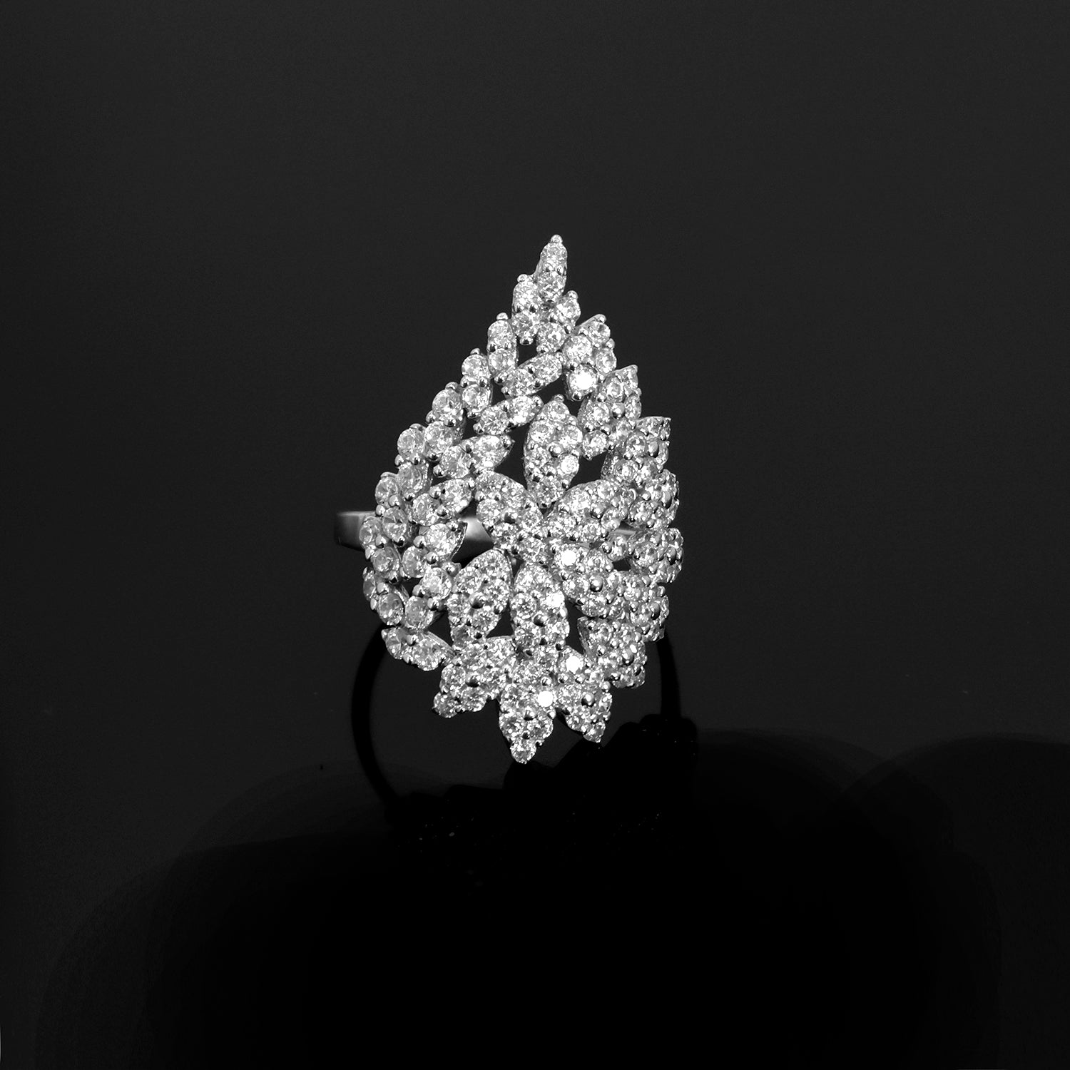 18K White Gold Floral Cluster Ring with Sparkling Stones – Zero Making Charge
