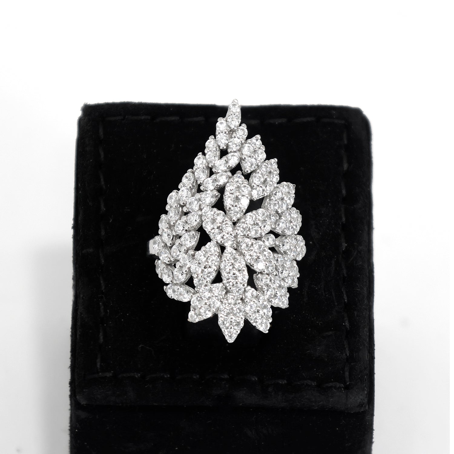 Discover an elegant 18K white gold ring featuring a dazzling floral cluster design with sparkling stones. Perfect for occasions or gifting.