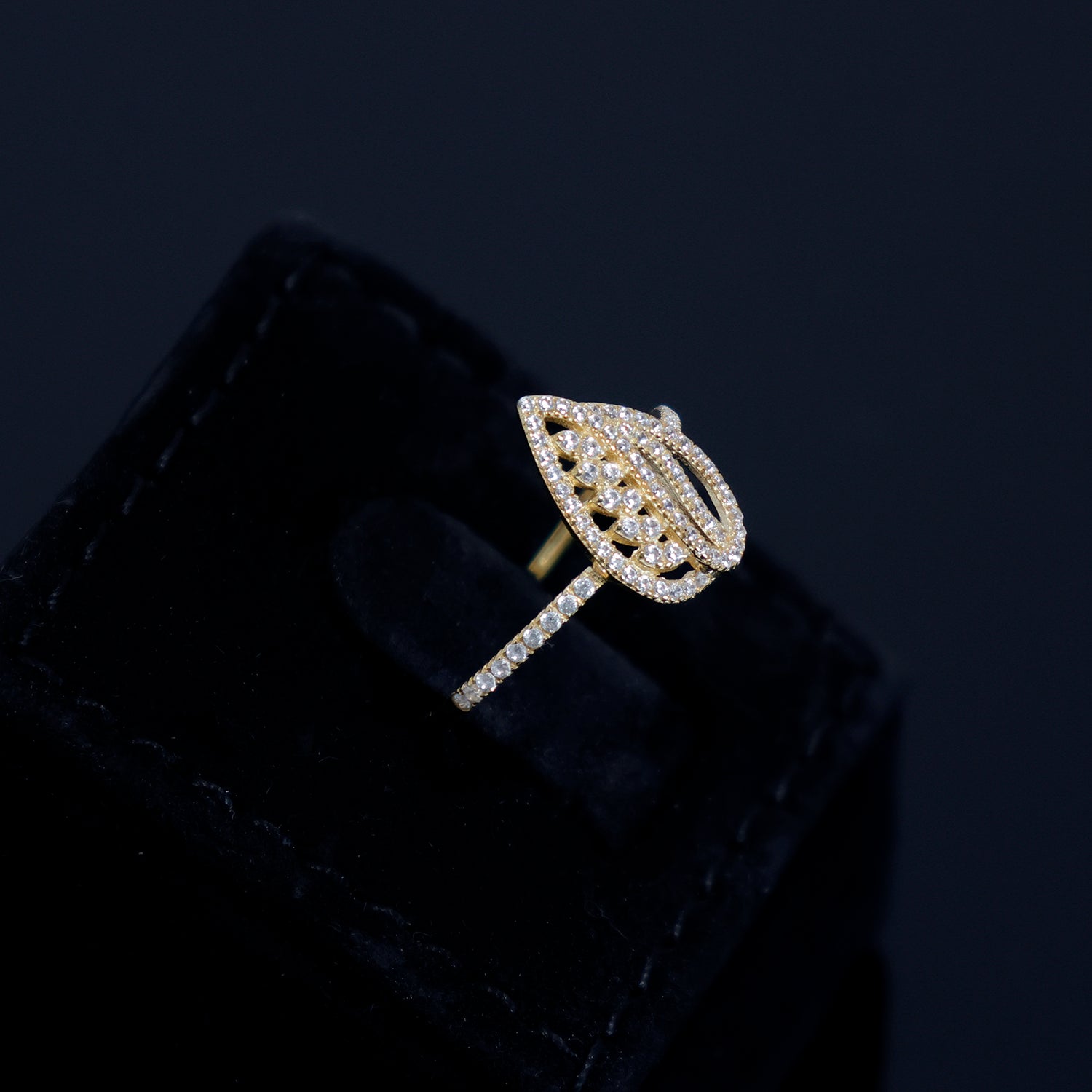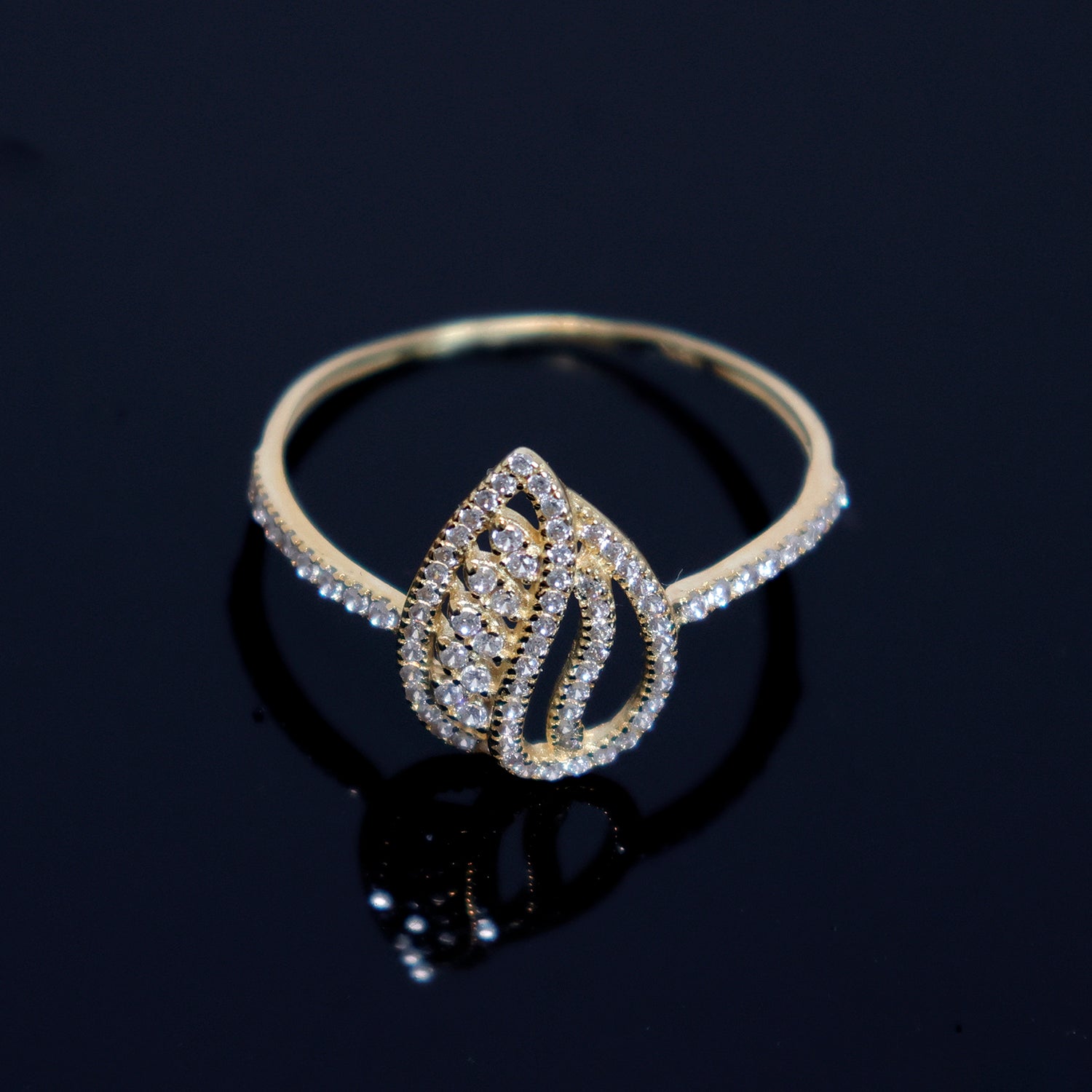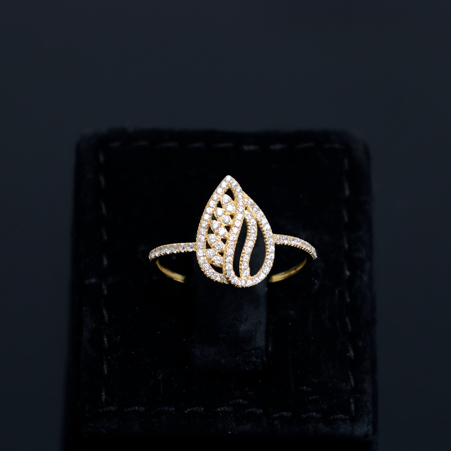 18K Gold Leaf Design Ring with Sparkling Stones – Zero Making Charge