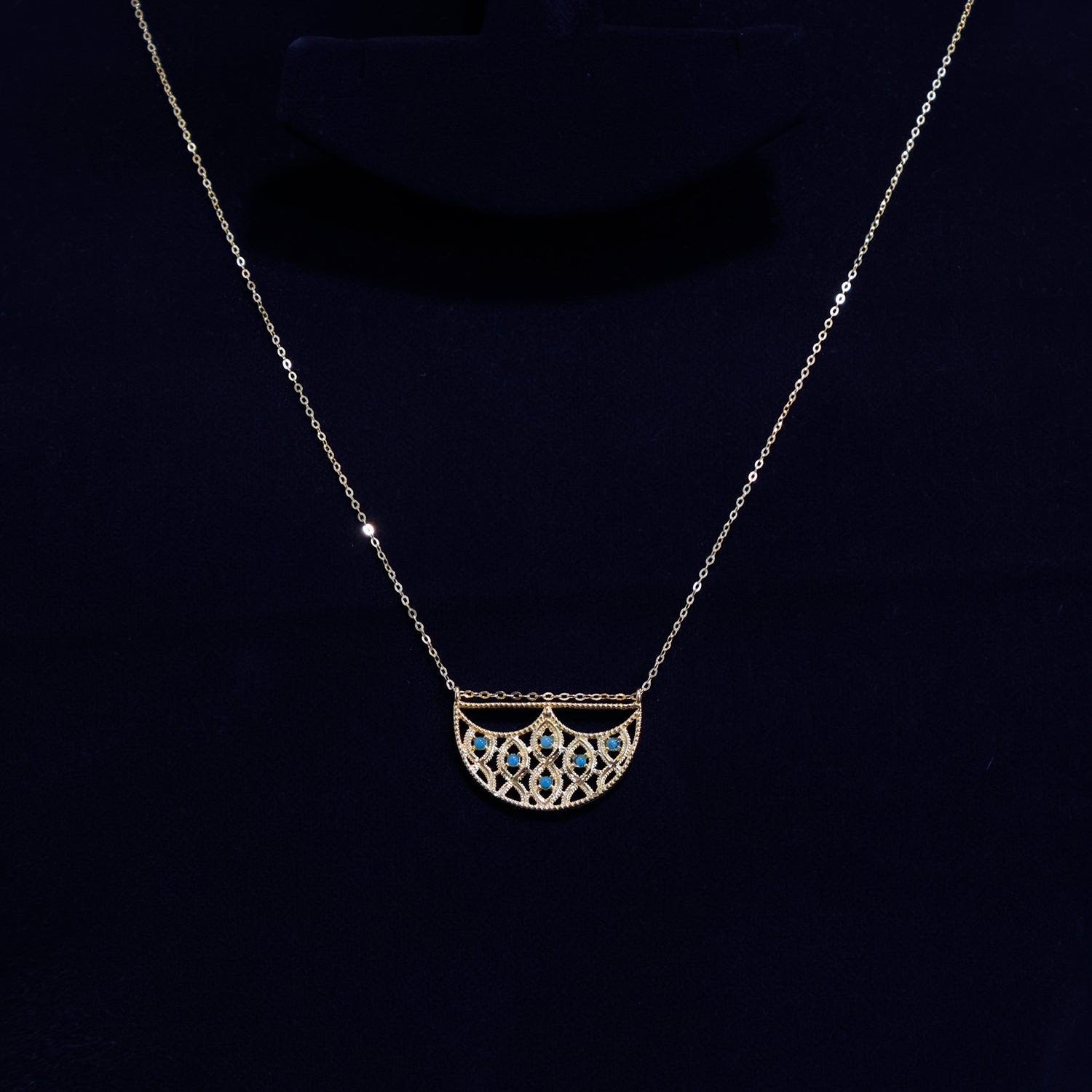 21K Gold Necklace – Half-moon openwork pendant with small blue-toned stone accents – Zero Making Charge