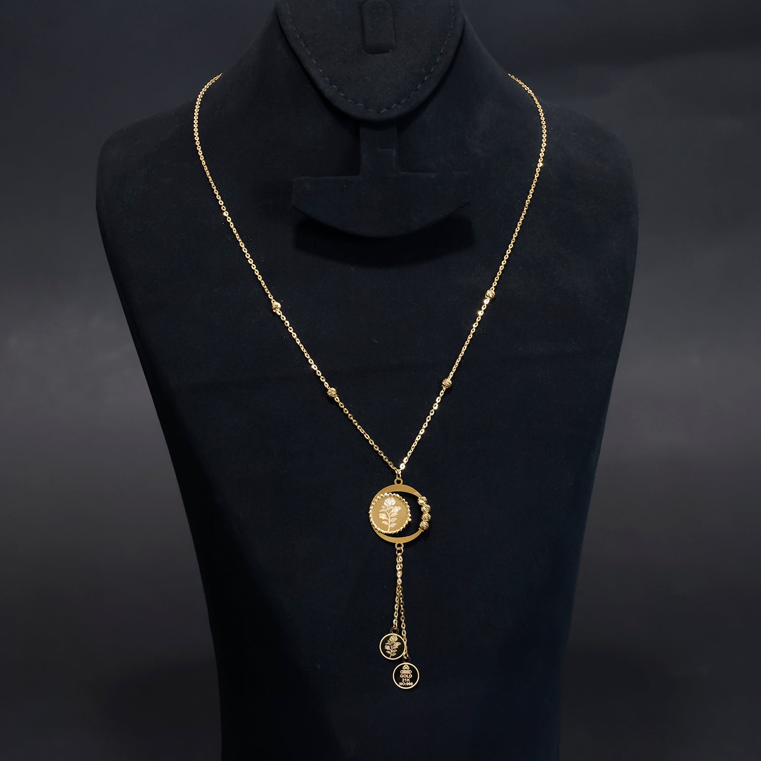 21K Gold Necklace with Rose Design – Elegant Plain Finish – Zero Making Charge