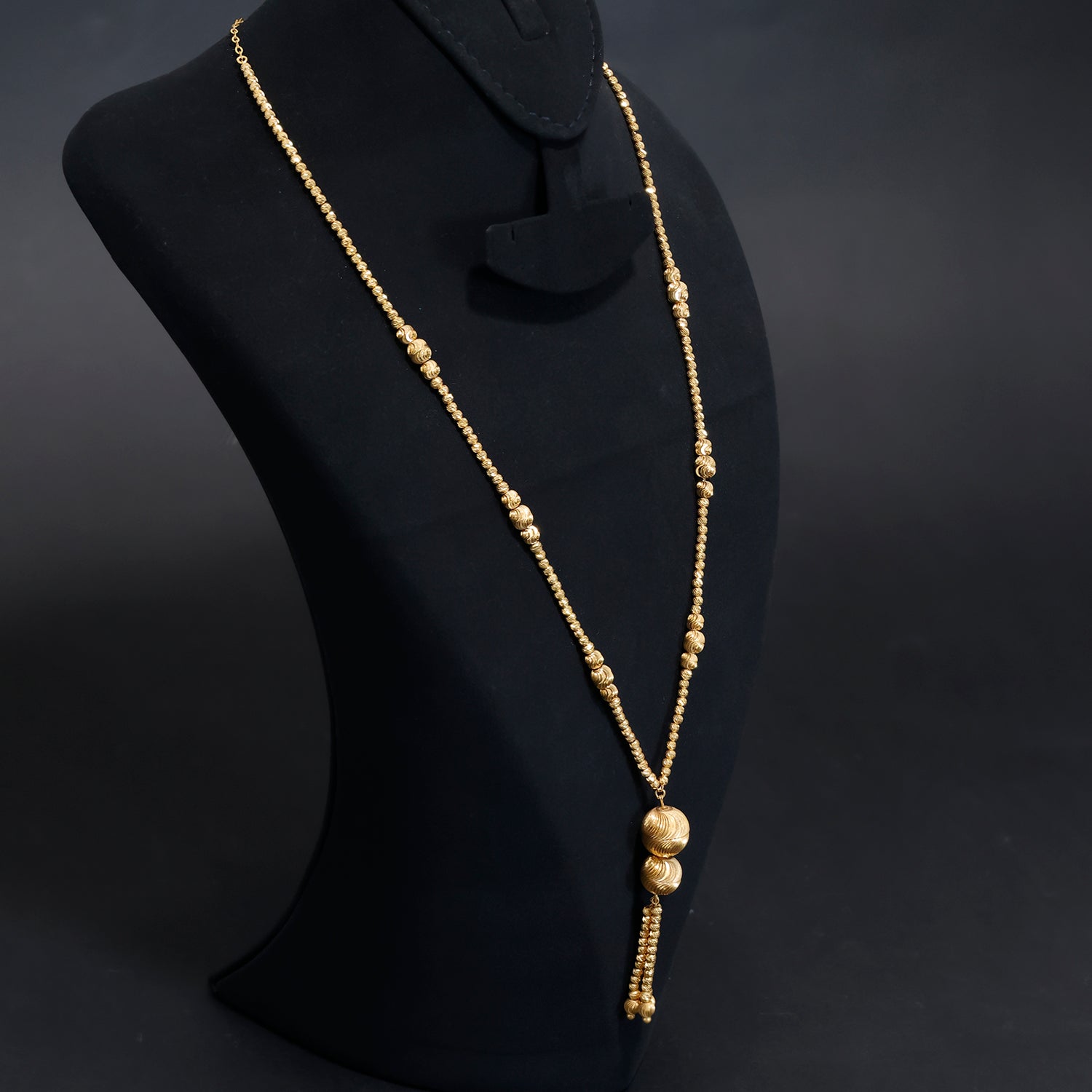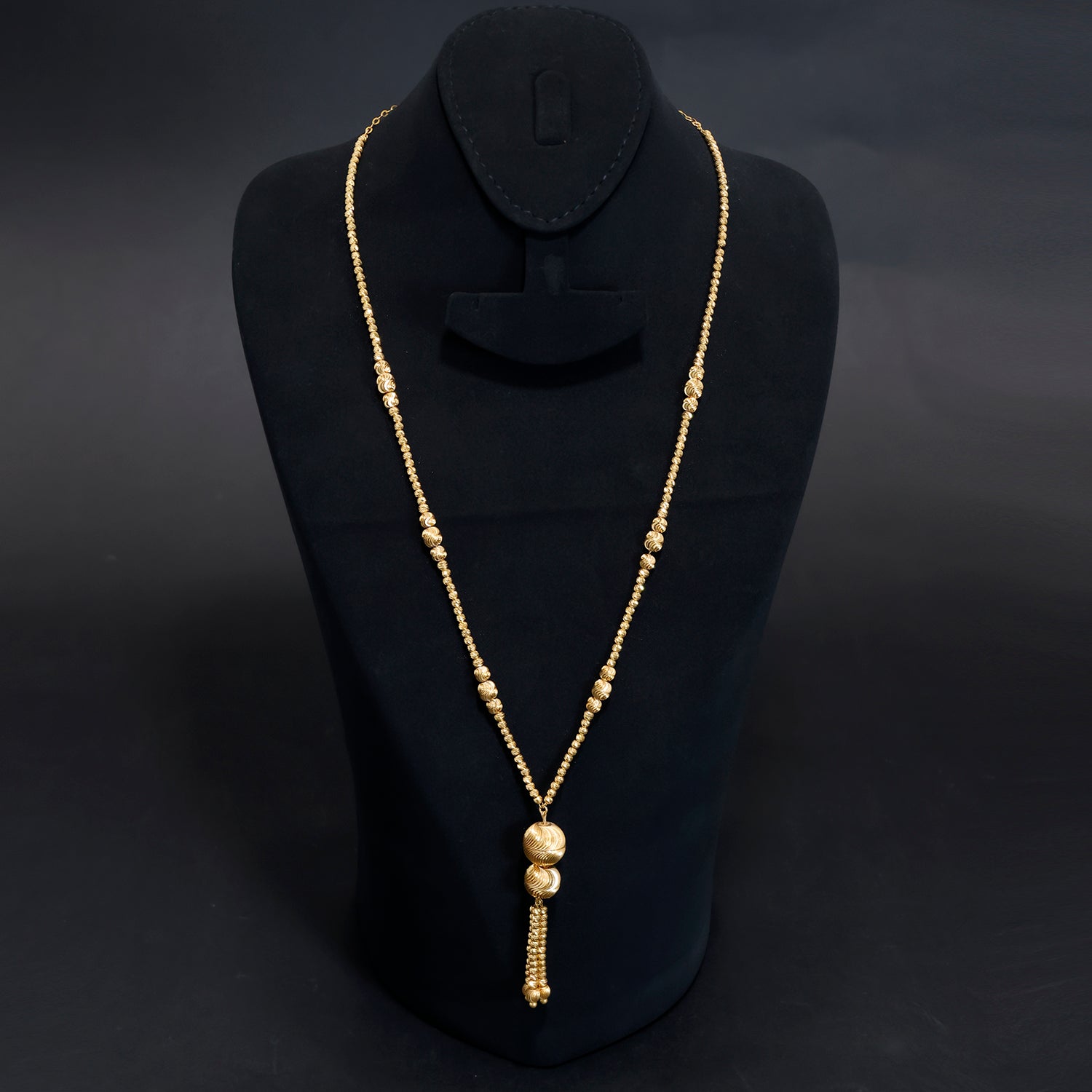 21K Gold Long Necklace – Textured Beads and Elegant Ball Tassel Design – Zero Making Charge