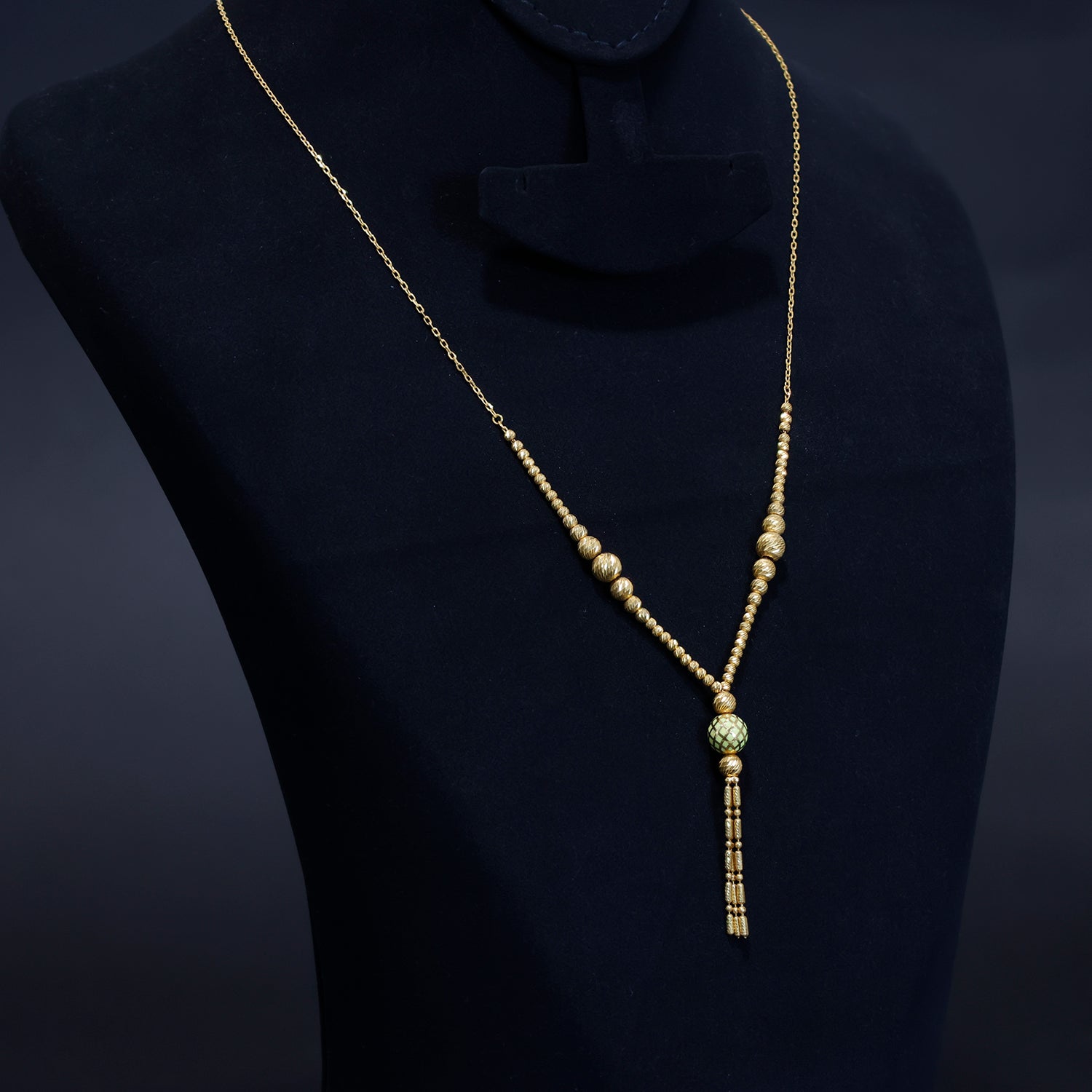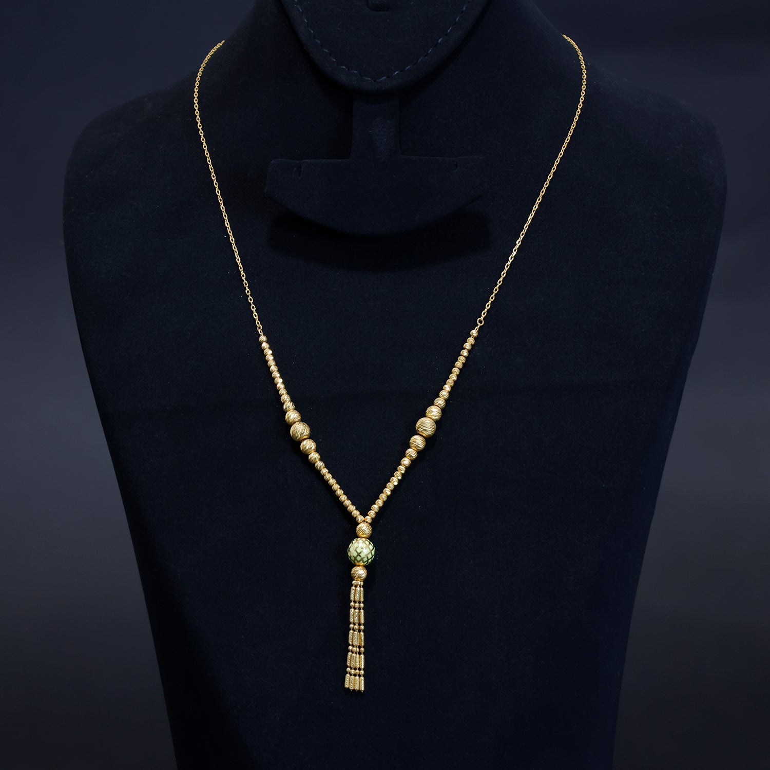 21K Gold Long Necklace for Women – Beaded Tassel Design – Main View