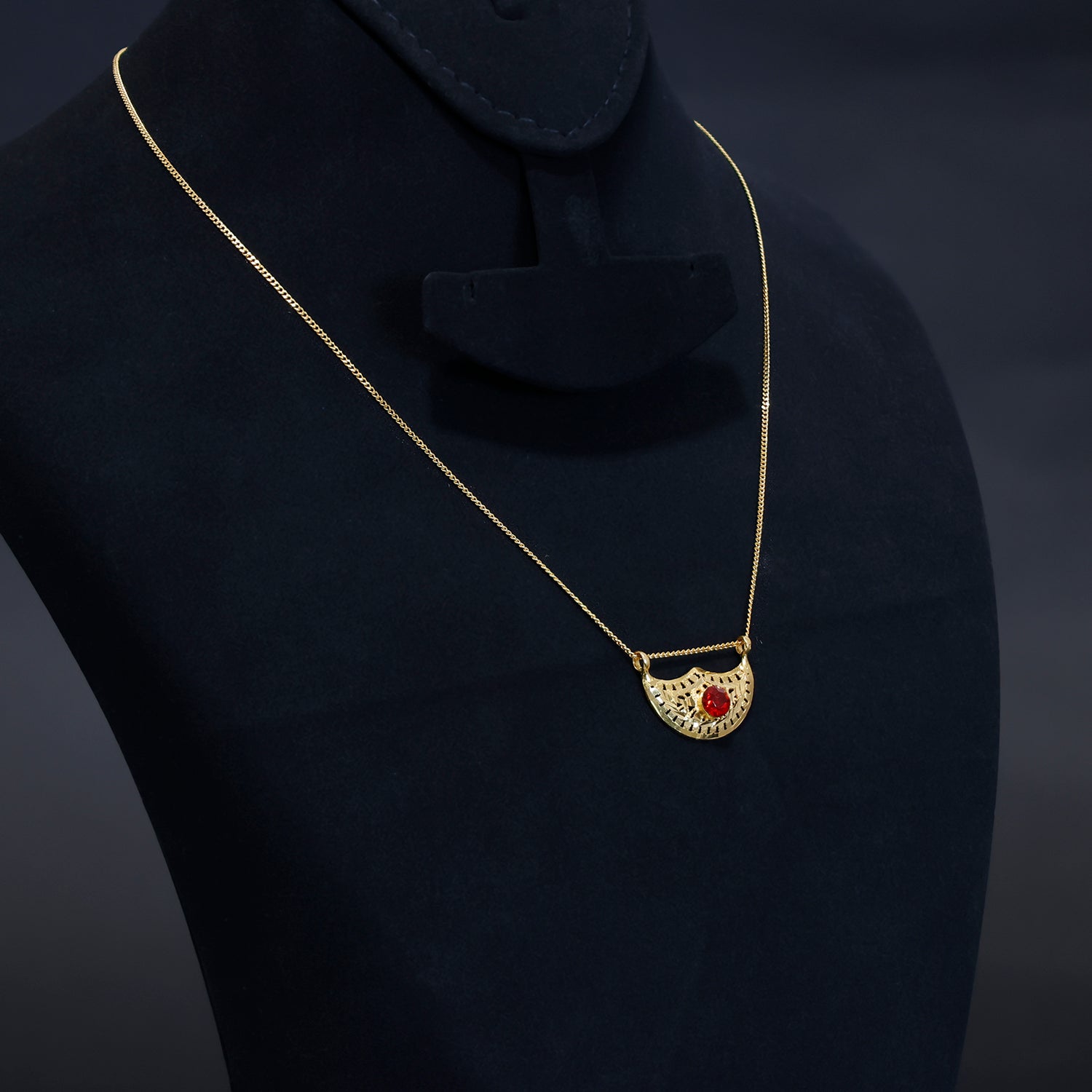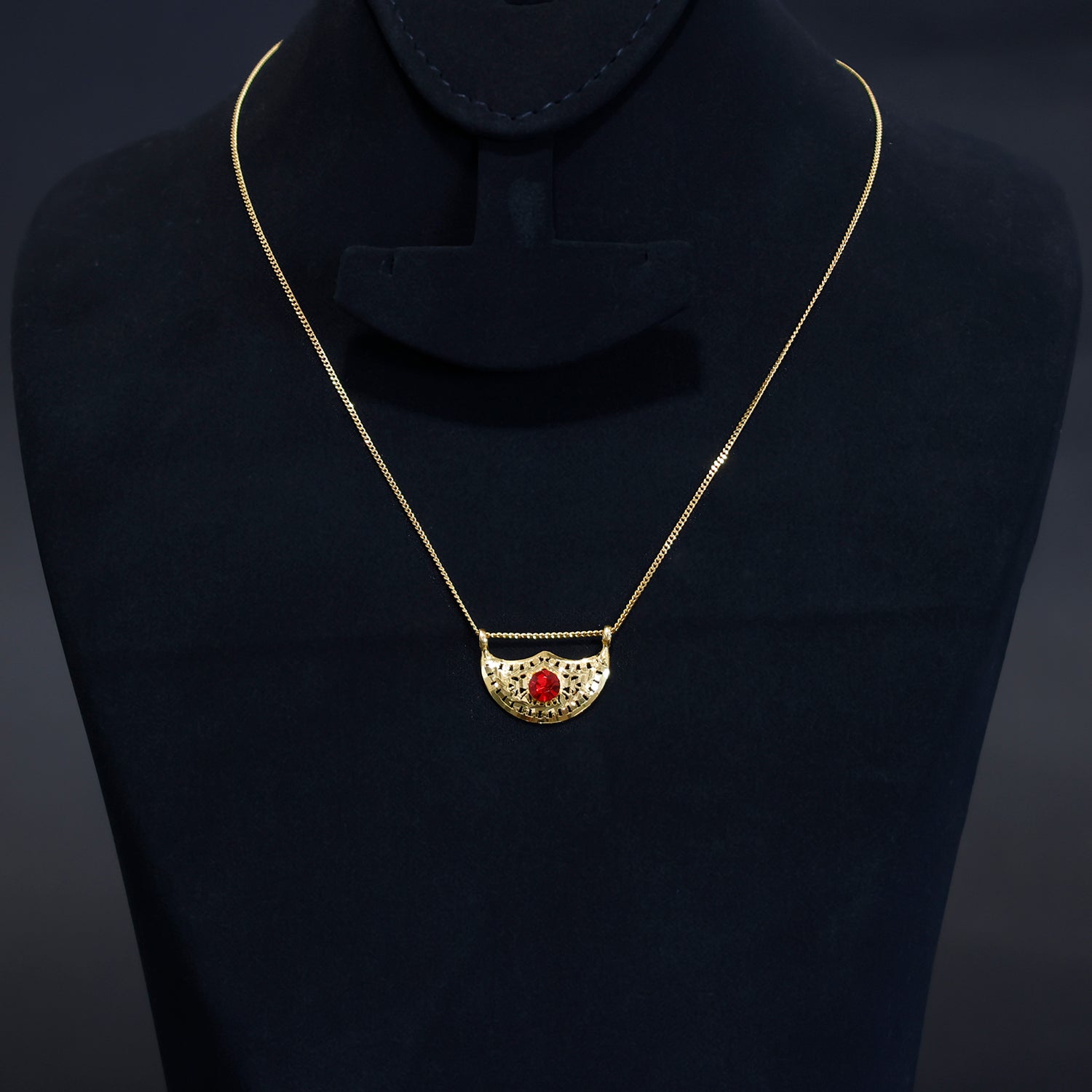 21K Gold Necklace – Filigree Half-Moon Pendant with Red Stone – Zero Making Charge