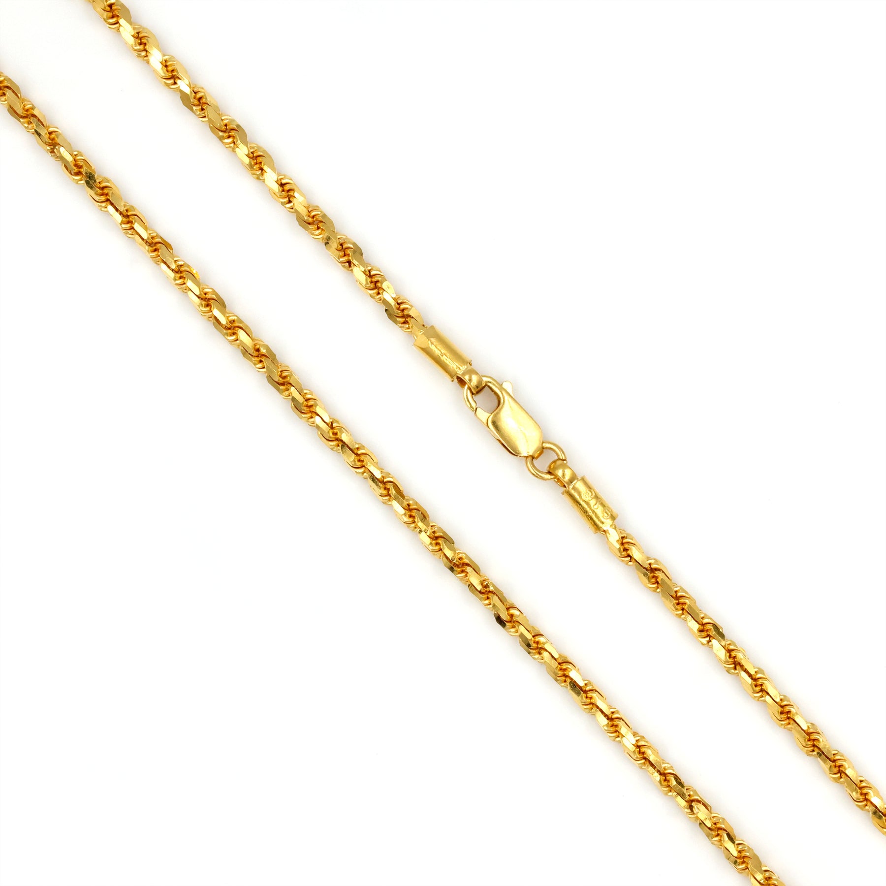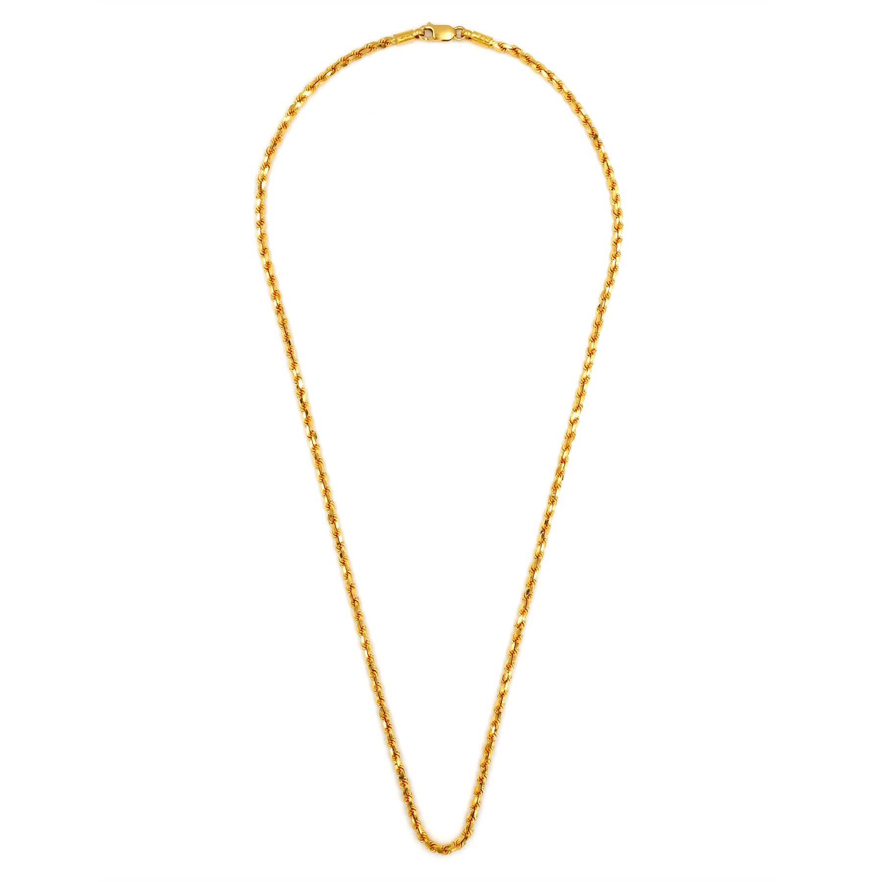 22K Gold Rope Chain Twisted Design – Dynamic Elegance & Supreme Purity Experience the captivating beauty of motion captured in gold with this stunning 22K gold rope chain featuring an intricate twisted design. Combining the classic rope pattern with enhanced spiral detailing, this chain delivers dynamic visual interest and superior 91.6% pure gold content in a design that catches light from every angle with mesmerizing brilliance.